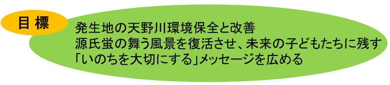 源氏蛍発祥の地・米原市・長岡(旧山東町)の天野川を再び美しい川に戻し、未来の子どもたちに「いのちの光」を伝 えたいため、どうか皆さんのお力をお貸しください。