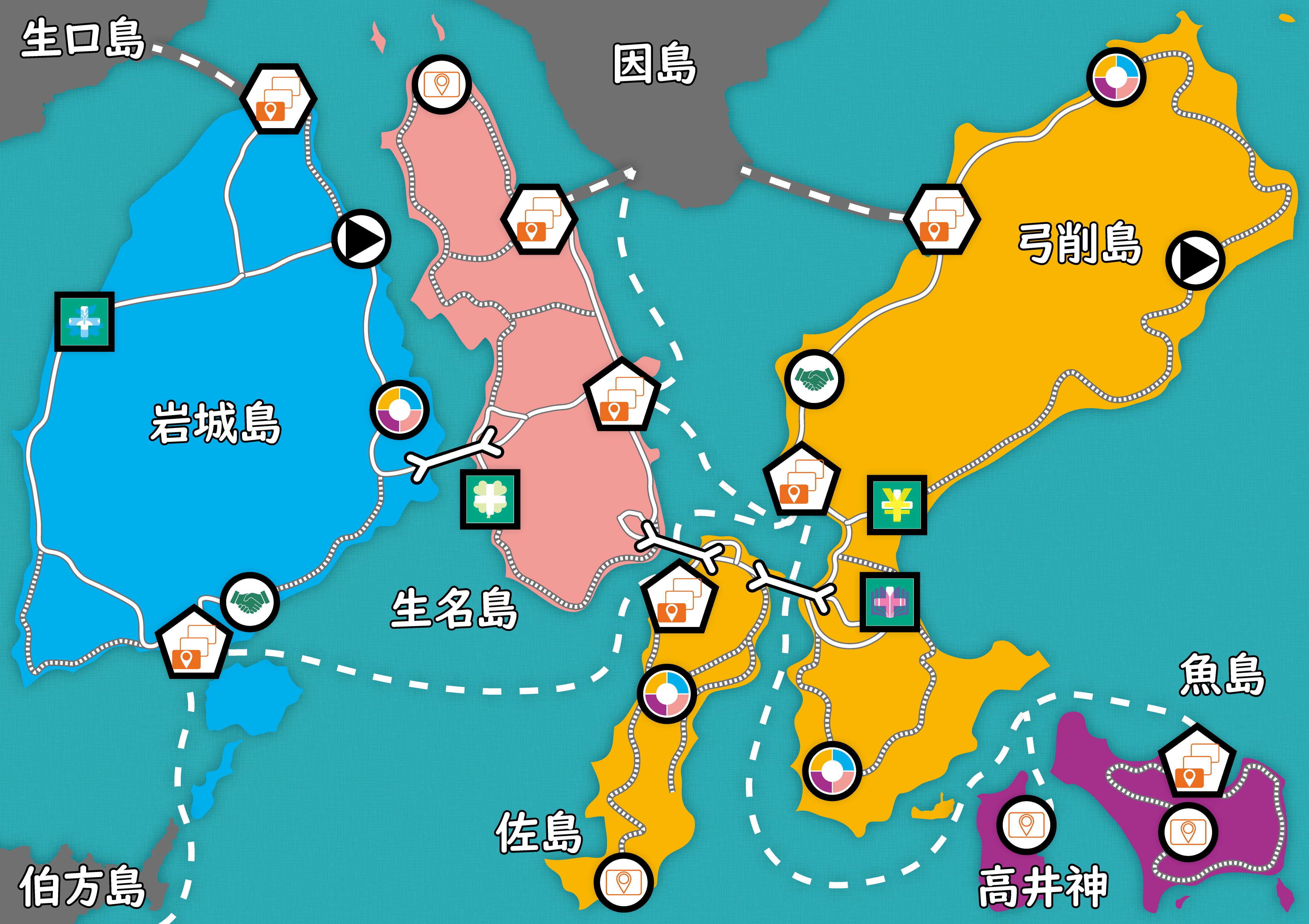 上島町のモデルをベースに、皆様の地域の固有課題を反映させたご当地版モジュールを共に考えます。専門技能が必要となるデザインデータは弊社で作成して、皆様は印刷会社に発注するだけで必要な数量の製品を製造できます。ゲームの背景思想やコアシステムはそのままに、地域の地図や特有の職業、直面している課題をコンポーネント化することで、住民や生徒が自地域の未来を圧倒的な没入感で「当事者」としてシミュレーションできる環境を構築します。