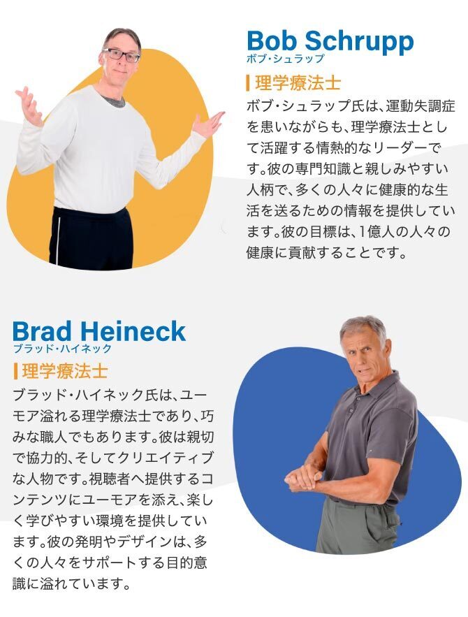 創業者のボブとブラッドは、長期間理学士「physical therapist」としての豊富な経験と専門知識を活かし、業界をリードする製品を開発。彼らの情熱は、数多くのユーザーに革命的な体験を提供しています。 -