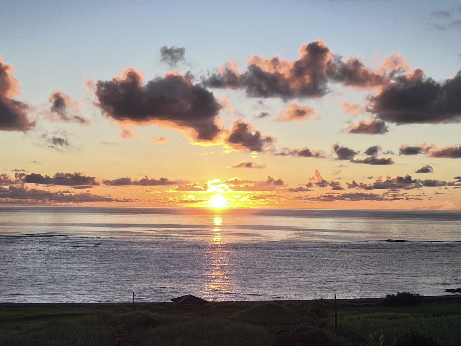 徳之島から見える水平線と昇る朝日