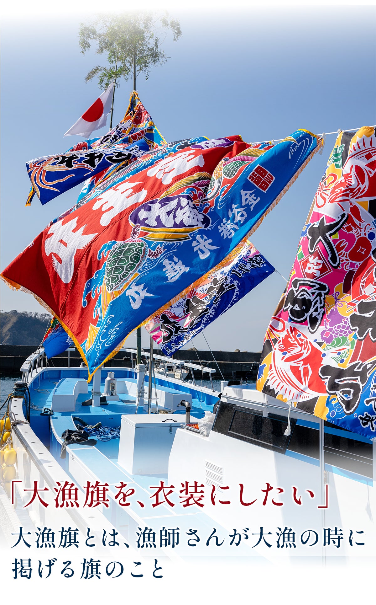 大漁旗とは、漁師さんが大漁の時に掲げる旗です。