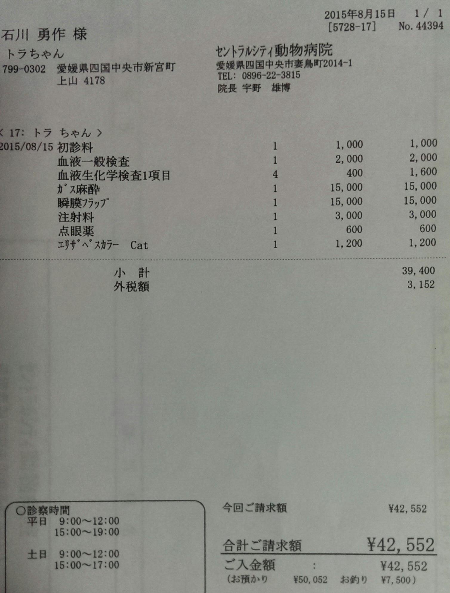 医療は全て兄の名前で(私の旧姓は石川)その甲斐がなく虹の橋に旅立った子も多いです。