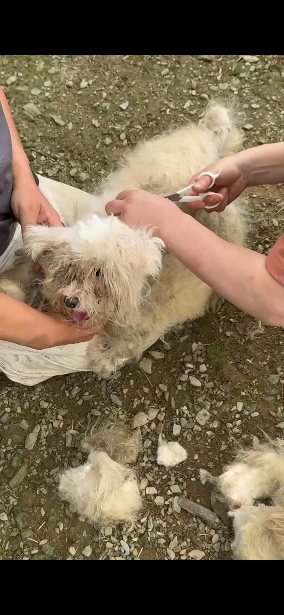 高齢の方のお宅で短いロープで括られて身動きの取れなかった子。おそらく寝る時も座ったままだと思われる。