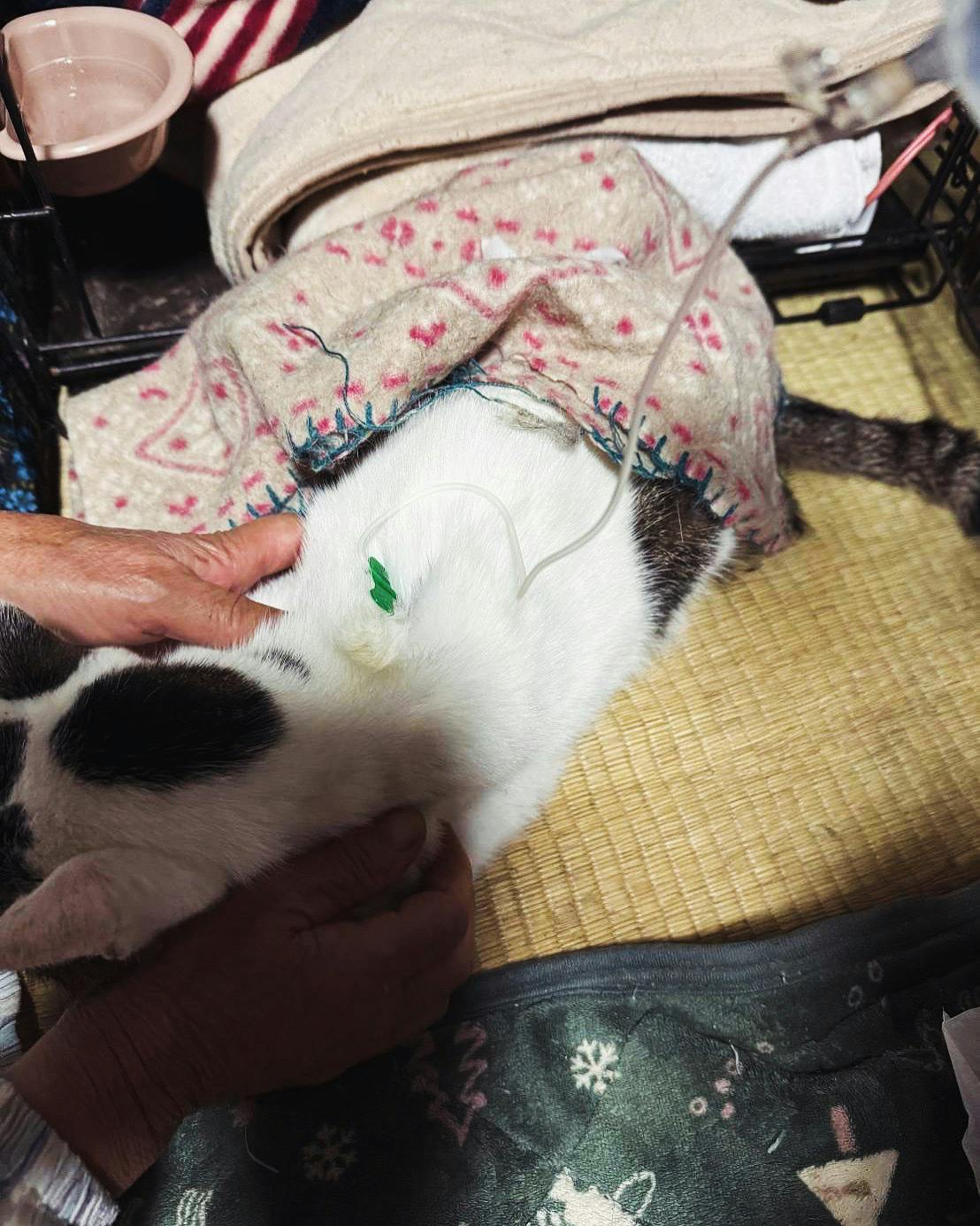 この子はFIPの疑いだったが、治療のかいなく虹の橋へ。基本輸液は自分で行う。