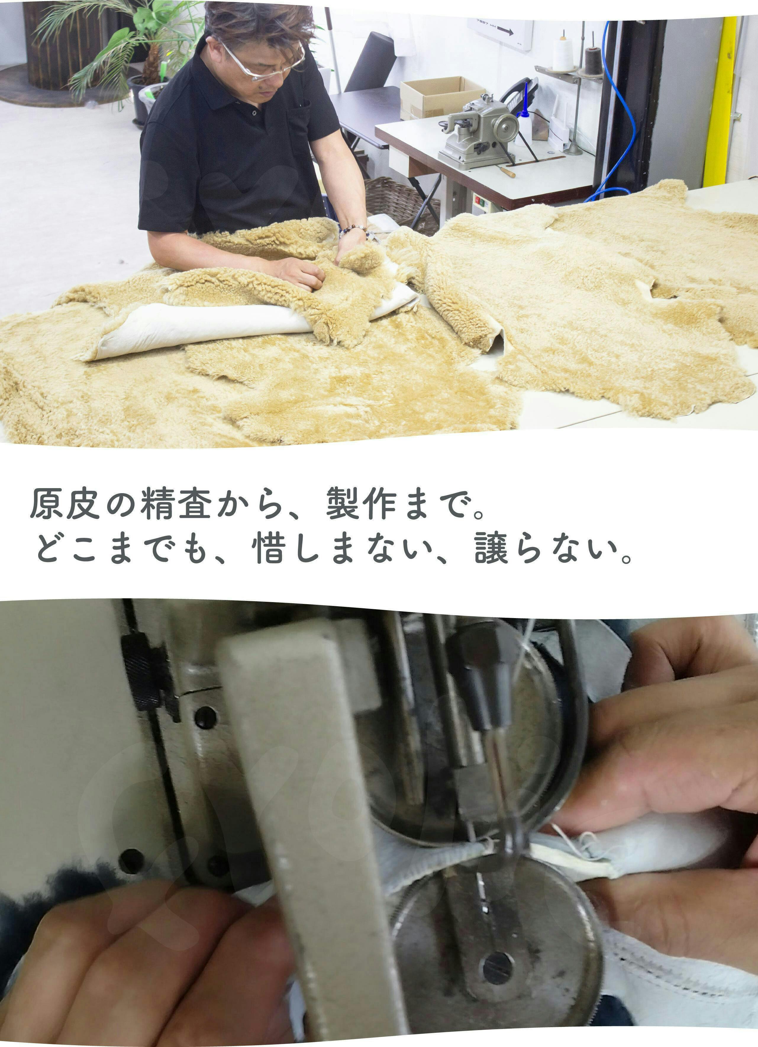 ウールマークが適用された品質の高い羊毛皮を日本へ輸入し、ムートン一筋33年の職人が手塩に掛けて作り上げた逸品です。