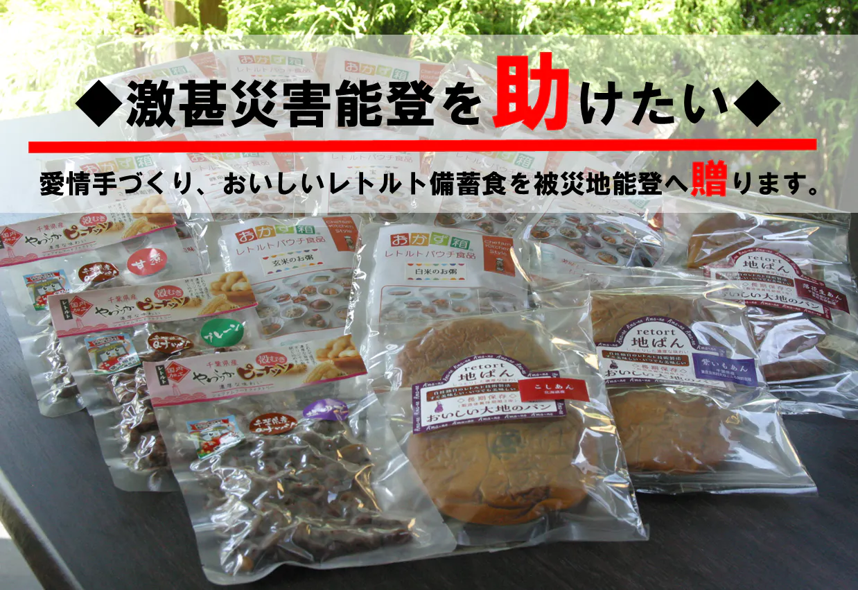 自社製造商品の、美味しいレトルト食品シリーズを提供します。単品おかずにこだわって開発した品々です。Qナッツは千葉県産品種でPナッツを超えた美味しさの意味でつけられた名称で、瀬戸内産自然塩を使用し一昼夜塩水漬け、生からレトルト袋内調理することで絶品の美味しさを叶えました。レトルトあんパンは世にも稀なる商品です。「地ぱん」は、全国各地の厳選素材を活かしその土地独自のパンを増やし、いつでも美味しく長期保存可能な商品にしたいとも思いから命名されたのですが、その開発には幾度ものテストを繰り返し完成には10年もの歳月を要しました。第1号は北海道の美味しい小豆を使ったこしあんを包んだ逸品です。常温保存賞味期限3年はいつでもどこでもおなかを満たしてくれます。それぞれが私たちの愛情と美味しさが詰まった品々です。自社通販、銚子市ふるさと納税返礼品でもリピート率の高い自慢の商品を詰め合わせてお贈り致します。