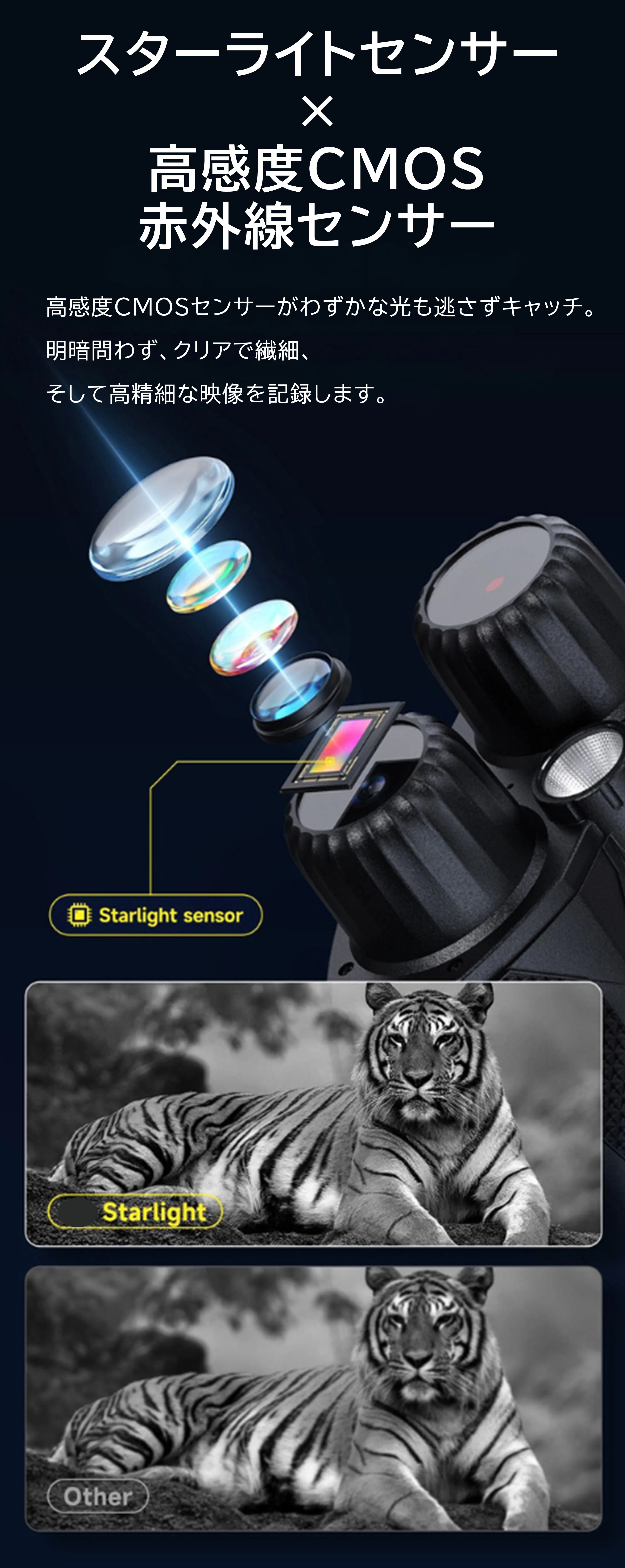 夜間の警備、観察、アウトドアシーンなど幅広く活用できます。