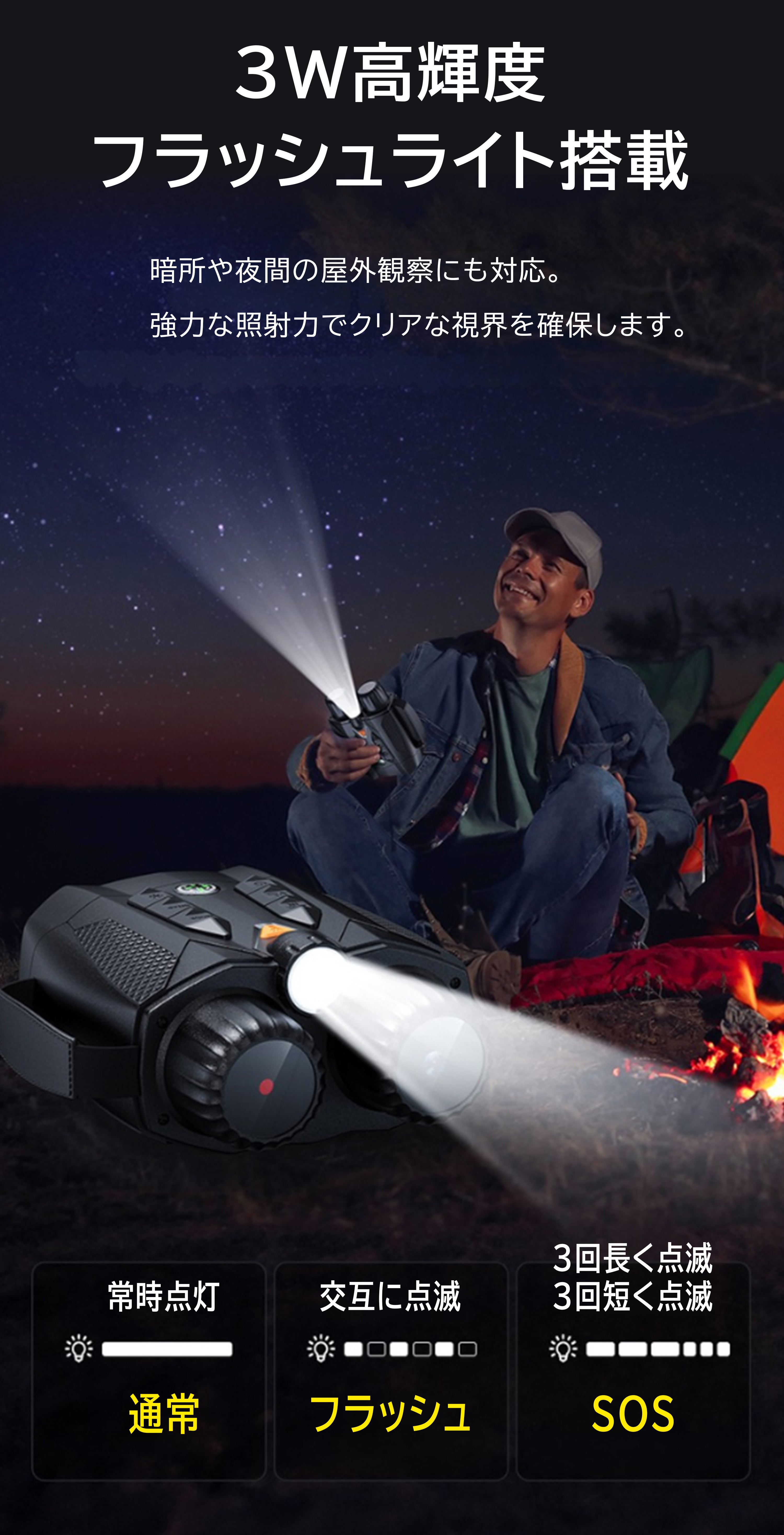 夜間の警備、観察、アウトドアシーンなど幅広く活用できます。