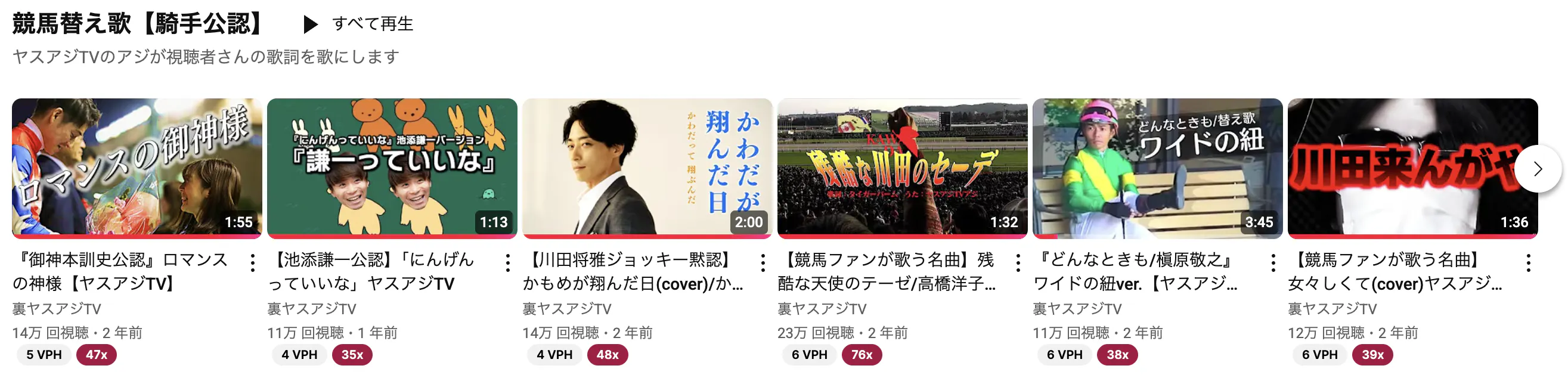 そうなると、ヤスアジTVで競馬予想動画や歌を扱わない動画に時間を優先するしかない。