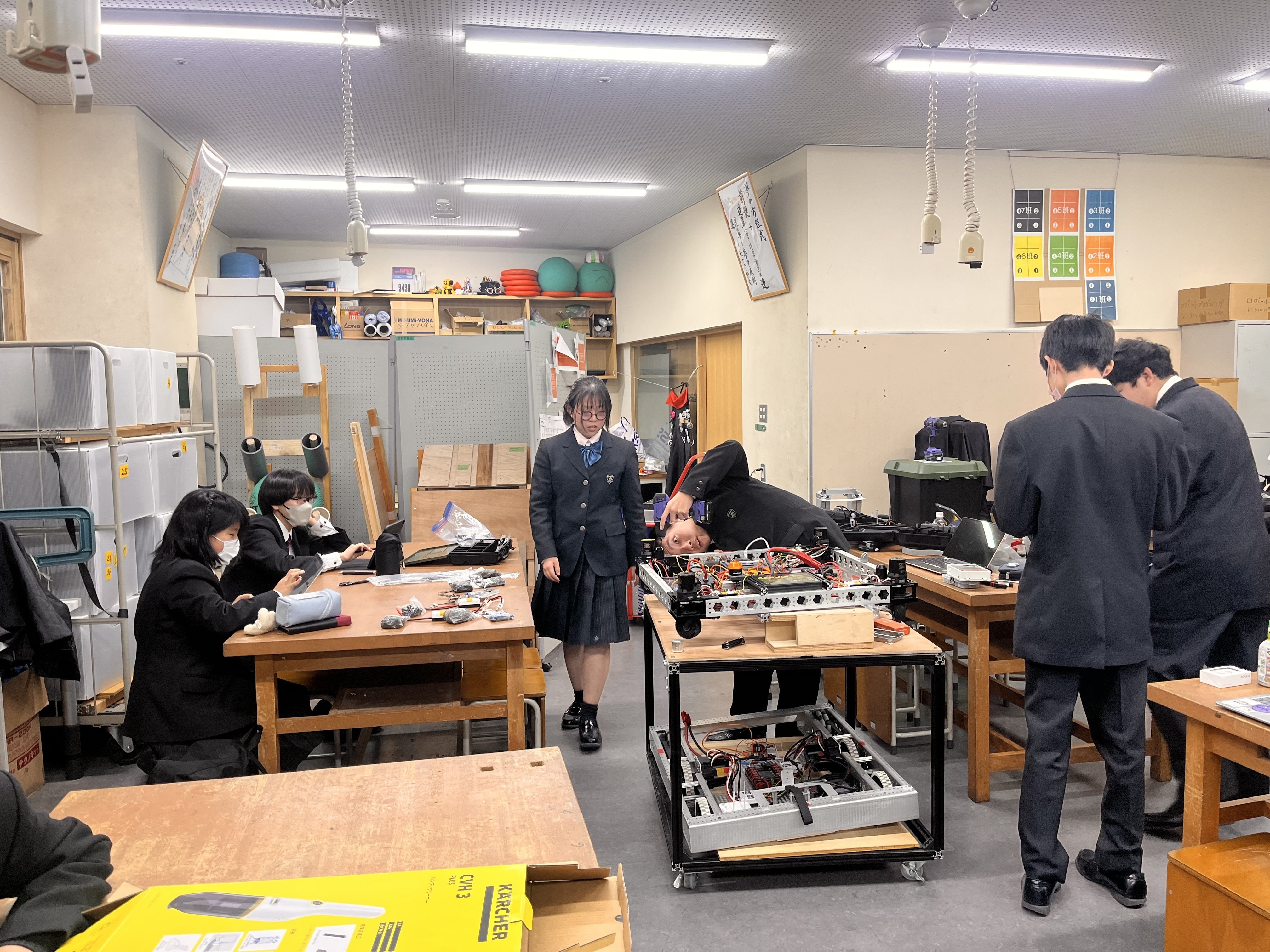 ロボット製作だけでなく、資金調達や広報、経営も生徒自身が行い、