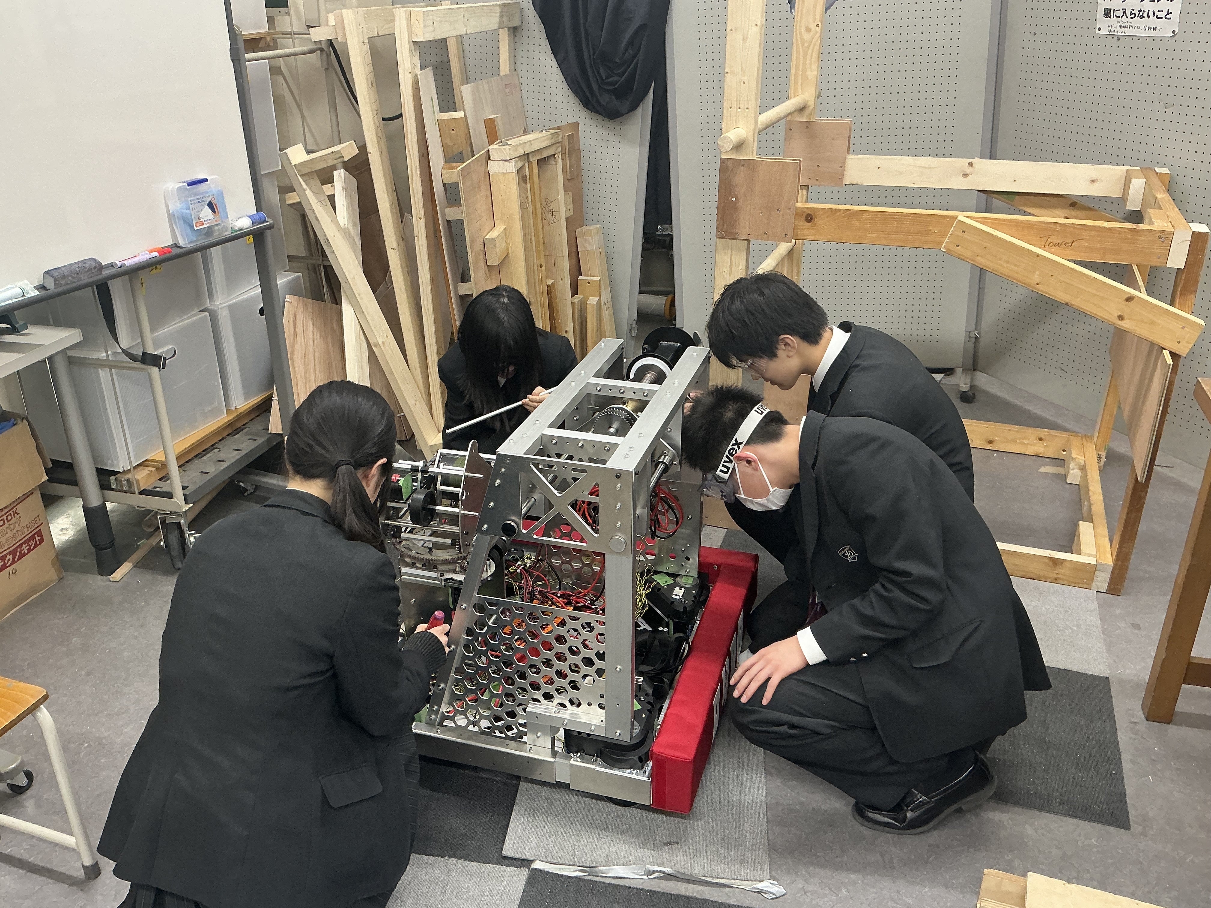 渡航までとうとう残り2日…4月1日から始まるロボット大会「FRC」に向けて、ついにバンパーが完成しました!!【バンパーとは?】バンパーはロボットの外周に取り付ける重要なパーツで、クッションのような役割を果たします。「FRC」では試合中にロボット同士がぶつかったり、フィールドの壁に衝突する場面が多くあります。そのぶつかった際の衝撃を吸収し、自分たちのロボットだも相手のロボットも守るための安全装置です。今回は、多くの保護者の皆様にご協力のもと完成することができました!本当にありがとうございました!!実は、昨年バンパーの製作が十分でなく、大会中に破損してしまいロボットが止まってしまうという悔しい経験がありました。なので今回はその反省を活かし、今年は企業の方々にもご協力いただきながら、バンパーの設計・強度ともにしっかりと見直しました。その結果、これまで以上に丈夫で信頼できるバンパーに仕上げることができました!!!ご協力・応援していただき本当にありがとうございました!!