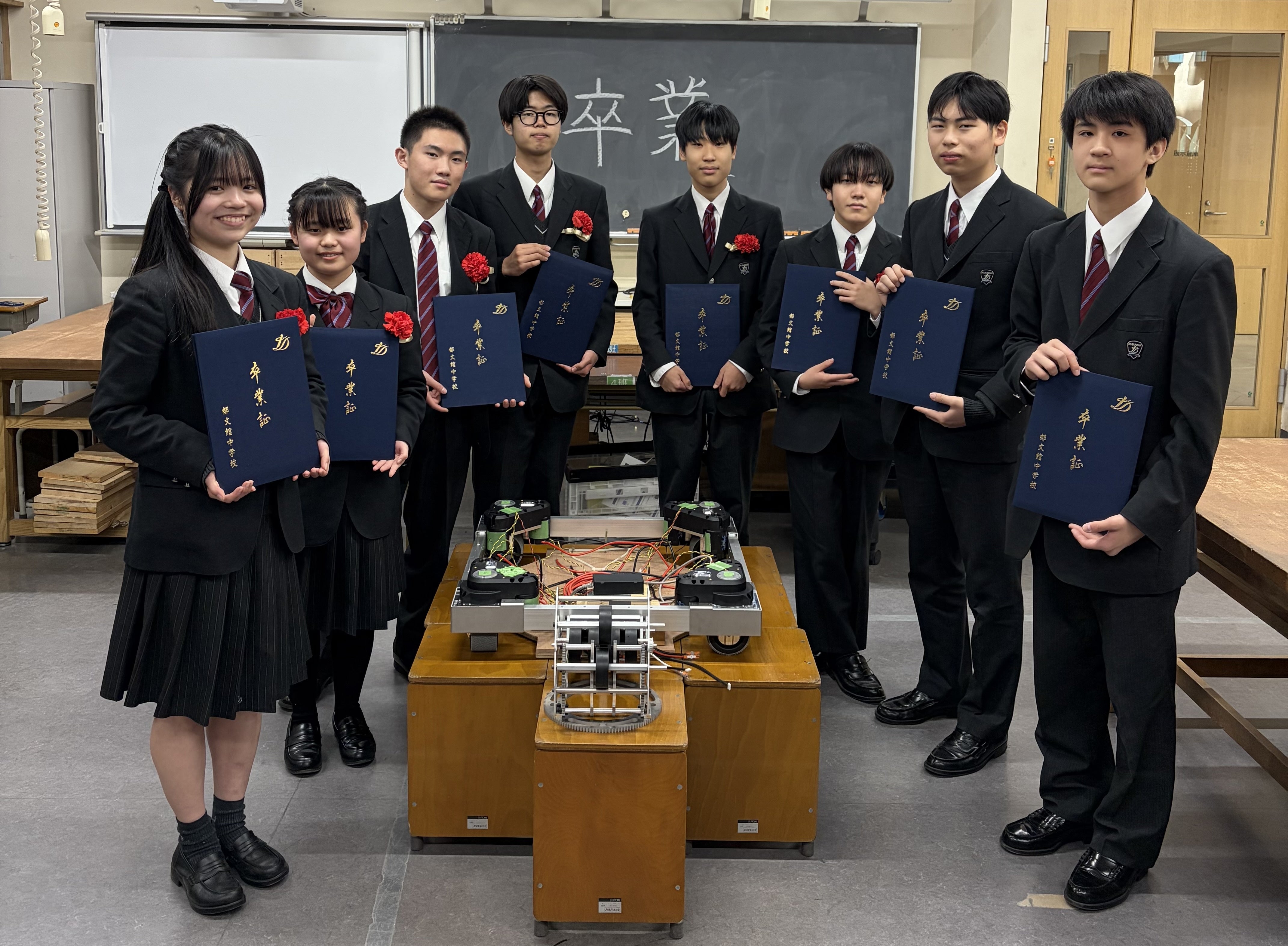 郁文館中学校・グローバル高等学校にて、中学3年生および高校3年生のZENSHINメンバーが無事に卒業を迎えました!卒業式後、普段ZENSHINの活動拠点となっている技術室では、卒業生たちがこれまで共に作り上げてきたロボットを囲みながら、記念撮影を行っていました。活動の中で培ってきた絆や努力の積み重ねで部屋中が思い出に浸って居ました。これまで新入生に中学最高学年の先輩としてたくさんのことを教えてくれていた中学3年生は、これから高校生となり、新たなステージでさらにZENSHINの力となってくれることと思います!!!そして、高校3年生の先輩方は、郁文館の最上級生としてZENSHINを支えてくれました。中学3年生、高校3年生の存在の大きさを卒業とともに改めて実感するとともに、卒業されることへの寂しさも感じています。しかし、先輩方が築いてくださったものをしっかりと受け継ぎ、残りのメンバー一同、これからは自分たちが後継者として率先してZENSHINをさらに成長させていけるよう、全力で努力していきます。先輩方、卒業本当におめでとうございます。そしてこれまでありがとうございました!新しいステージでのご活躍を心より応援しています!そして、、、4月1日から始まるFRCのロボット大会が、卒業生の先輩方と共に挑める“最後の大会”になります。これまで何度も一緒に悩み、ぶつかり、乗り越えてきた時間。そのすべてを、この大会に、このメンバーでぶつけられるのも、あと一度きりです。大会まで残り6日。限られた時間の中で、できることはすべてやり切りたい。「あの時もっとやれたはずだ」と後悔するのではなく、「ここまでやり切った」と胸を張って言えるように――一瞬一瞬を大切に、全力で走り抜きます。このメンバーで戦える最後の舞台。だからこそ、最高の形で締めくくりたい。ぜひ、最後クラファン終了まで残り6日応援していただけると大変嬉しい限りです。よろしくお願いいたします