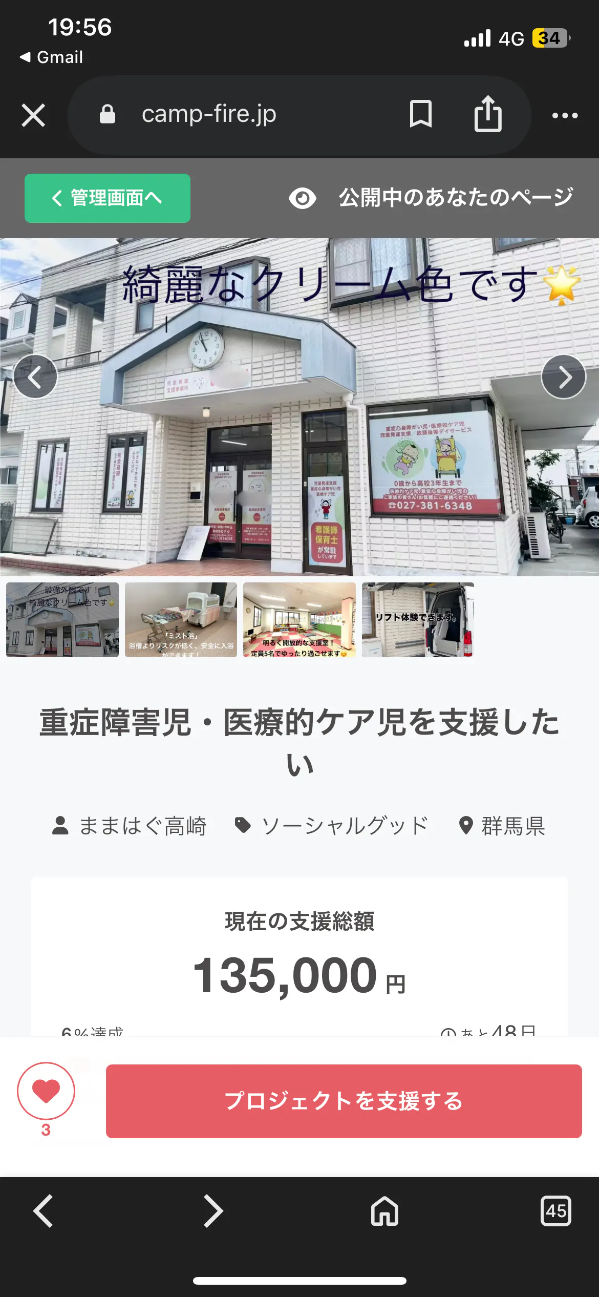 皆様のおかげで、本日までで135000円の支援を得ることができています。