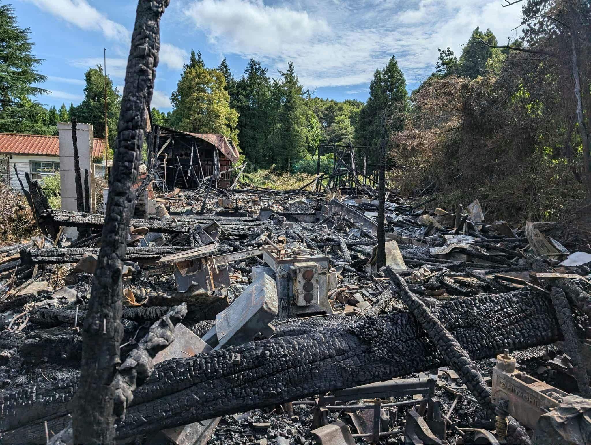 出火当初は木工所でよくある漏電の疑いもありましたが、現場検証の結果、落雷による火事と確定しました。25年お世話になった工房がこのようなかたちでなくなってしまうとは思ってもみませんでした。