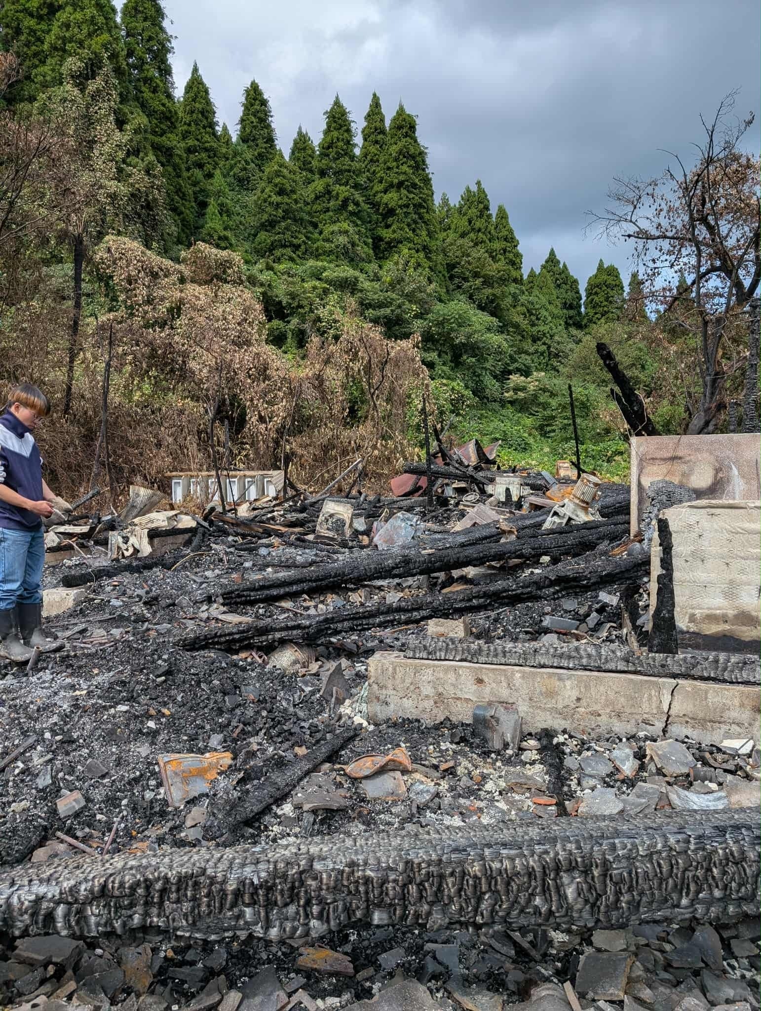 建物も、木工設備も、材料の木材もみんな炭になってしまいました。