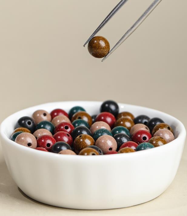 香木やハーブを粉末にし、自然素材の樹脂でひと粒ずつ丁寧に練り上げました。