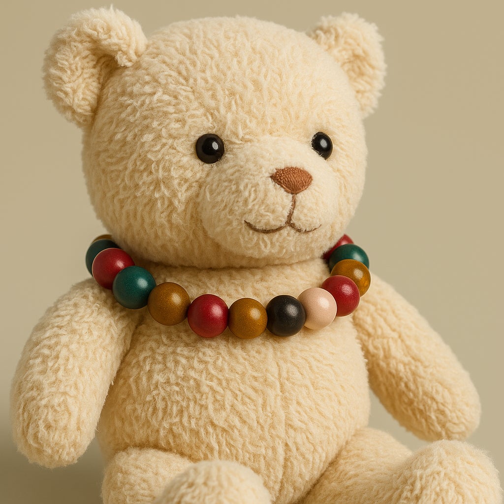 小さなぬいぐるみにも似合う、まるくてやさしい「五行香珠ブレスレット」。