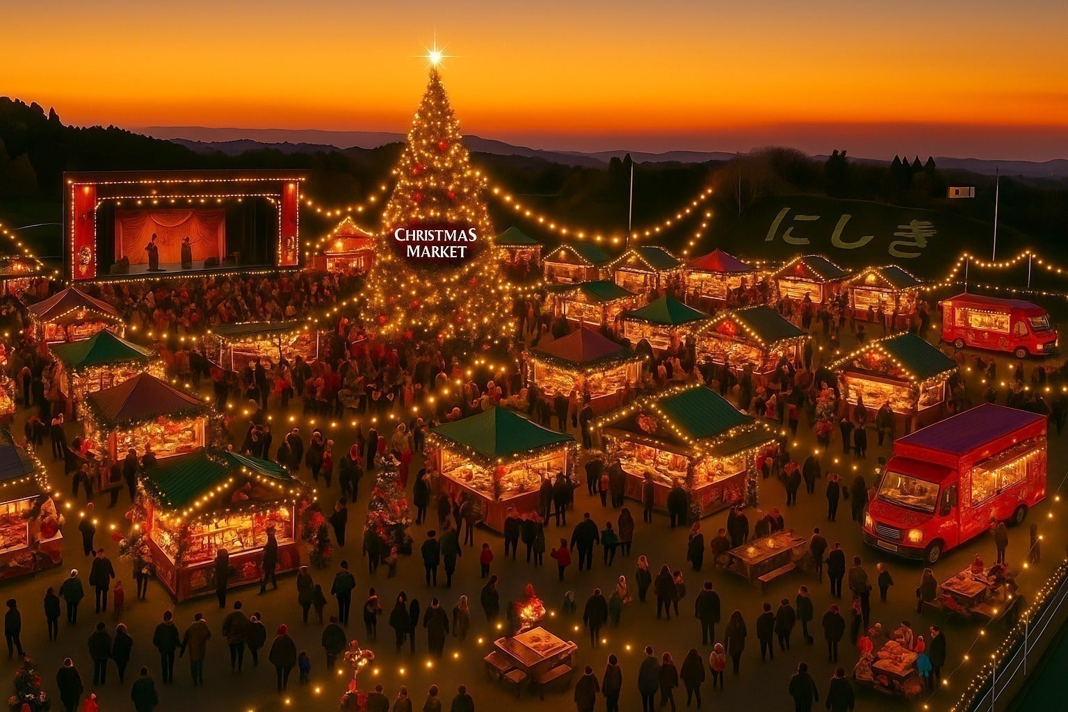 イルミネーションが灯る夜に、温かいグルメや雑貨、音楽に囲まれながら、人と人が自然と笑顔で交わるような空間を目指しています。