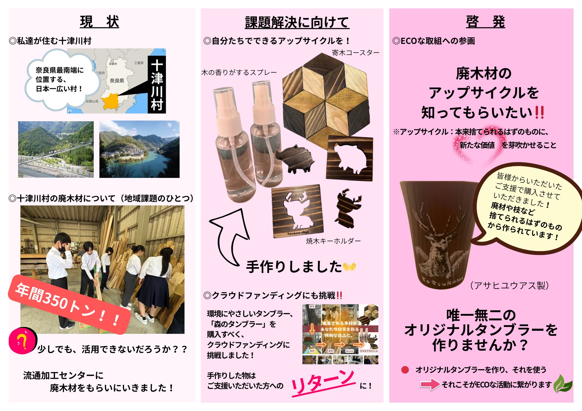 今はまだ、小さな活動ですが、将来的には十津川村の廃材から、このタンブラーを作りたい!