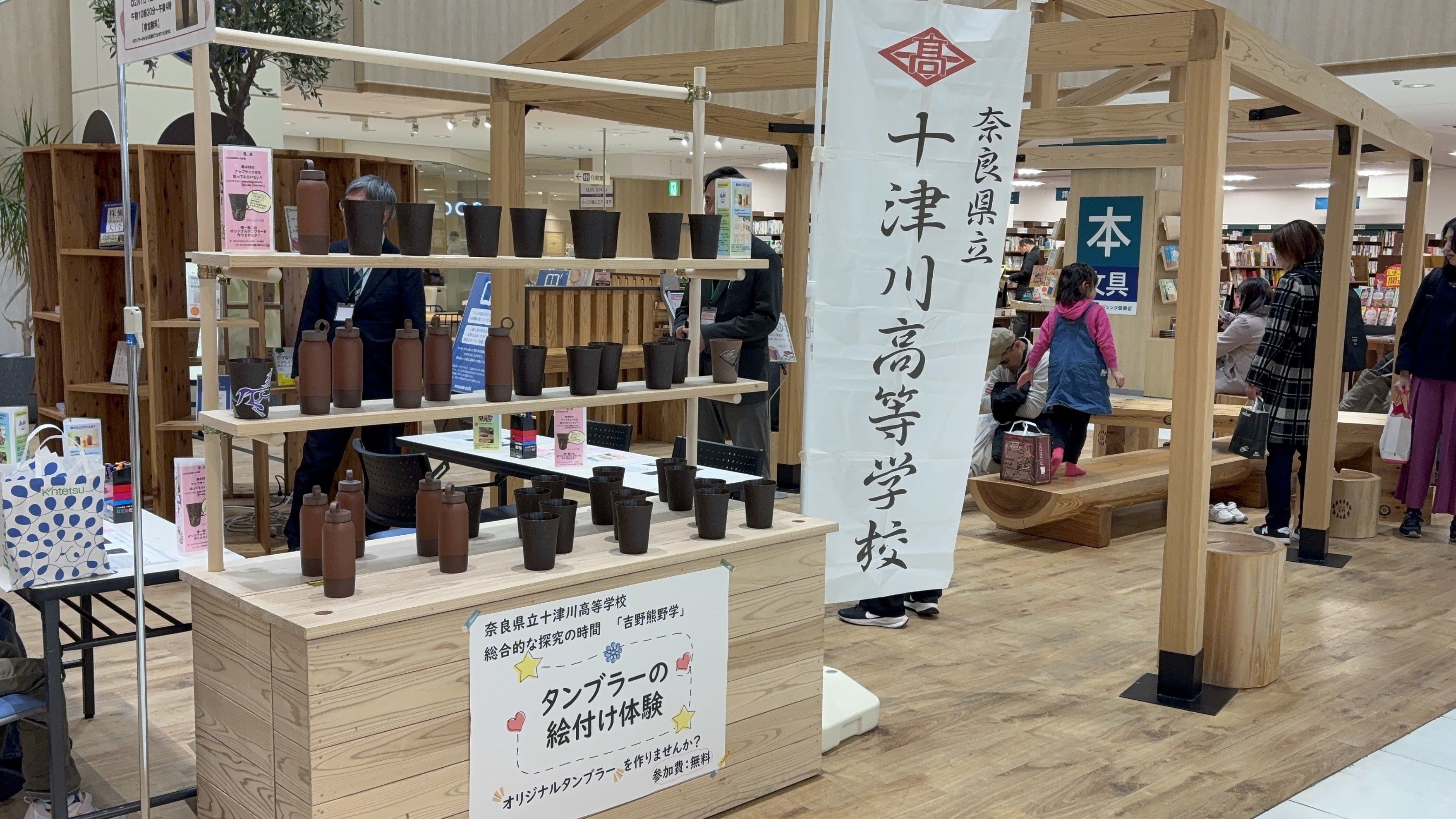 2026/02/09 19:582026年2月7日(土)@近鉄百貨店橿原店において、ワークショップを開催しました。・十津川村では、毎年350トンもの木材を廃棄してしまっているという現状があり、・それを少しでも減らしたい!という思いで活動している。・今、自分たちにできること=クラウドファンディングやワークショップを通して、十津川村の廃木材の現状を知ってもらい、アップサイクルについて啓発すること!これらをお話しすると、多くの方から共感してもらうことができ、嬉しかったです。捨てられるはずだった麦芽やヒノキから作られた、「森のタンブラー」や「森のマイボトル」に、絵を描いてもらい、世界に一つのタンブラーを作ってもらいました!大人から子どもまで、夢中になって楽しんでくださっていた姿が印象的でした。参加してくださり、ありがとうございました!植物由来のタンブラーやボトルがあることを知ってもらい、アップサイクルがより一層広がれば嬉しいです! もっと見る