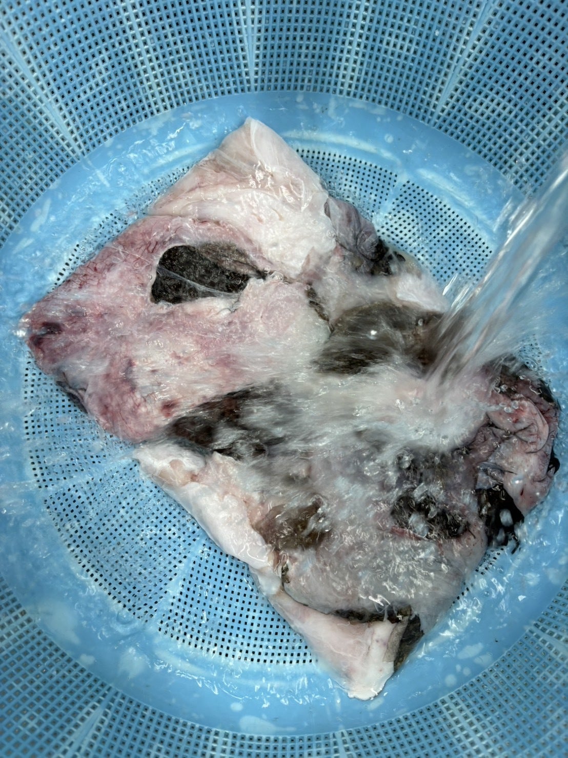 冷凍したアンコウの皮を解凍