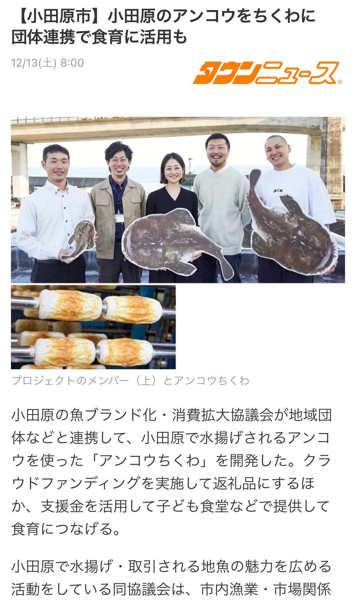 今回の「アンコウちくわ」プロジェクトについては商品開発・クラウドファンディングをもって、一定の取組は終了となります。