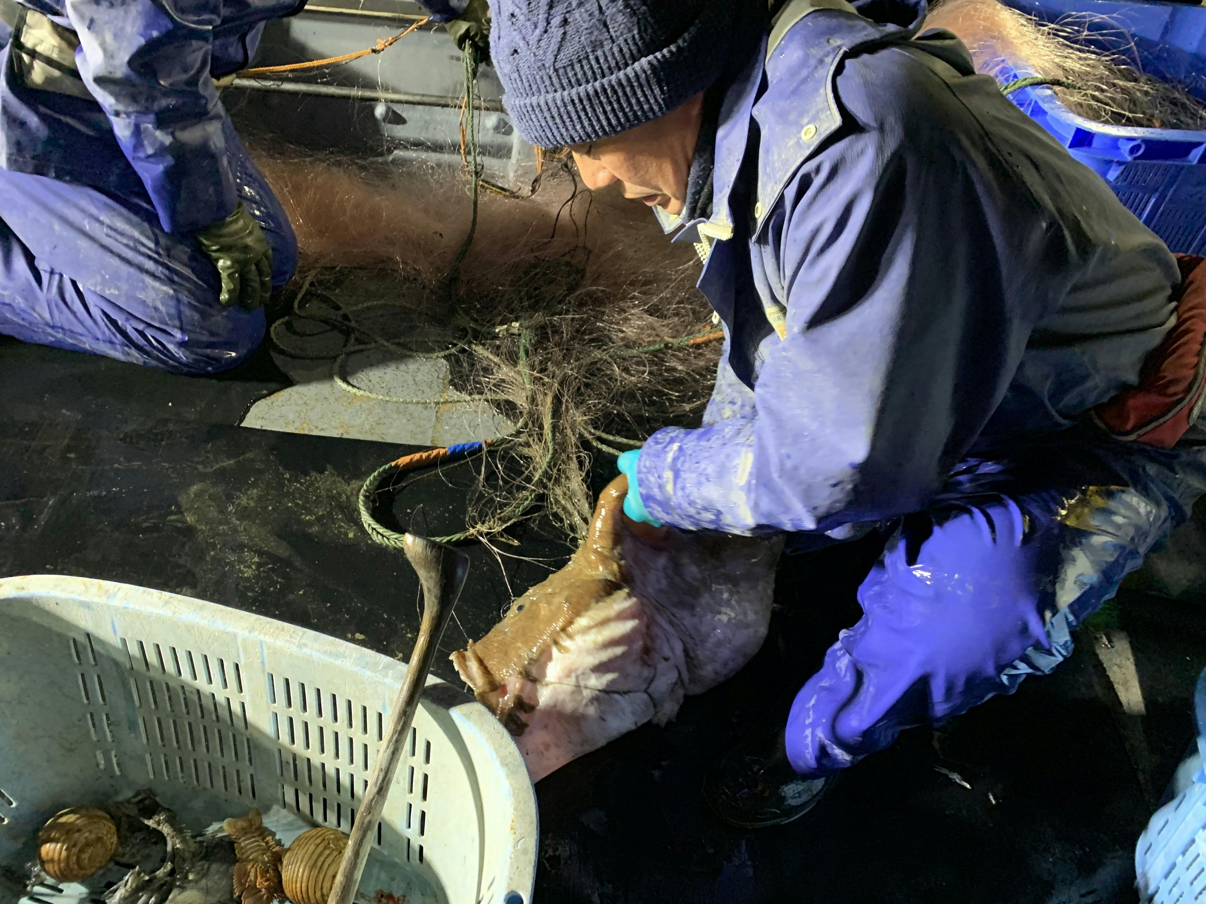 小田原のアンコウは主に刺網漁にて漁獲されます