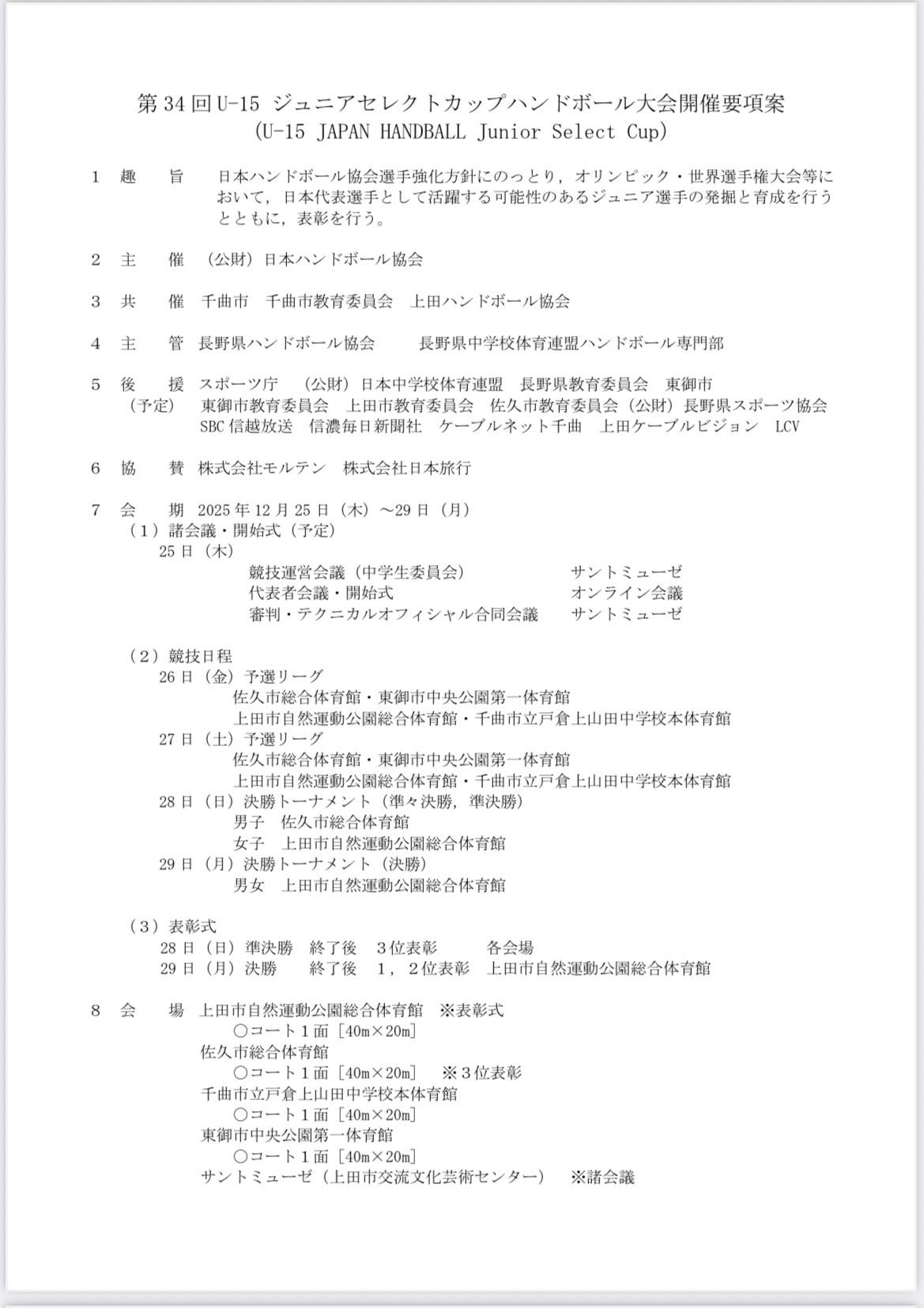 2025年12月25日から12月29日まで長野県で開催される第34回U-15ジュニアセレクトカップハンドボール大会に、広島県選抜チームが出場することが決まりました。これは7年ぶりの快挙です。7年という長い間、広島県は全国大会に出場することができませんでした。