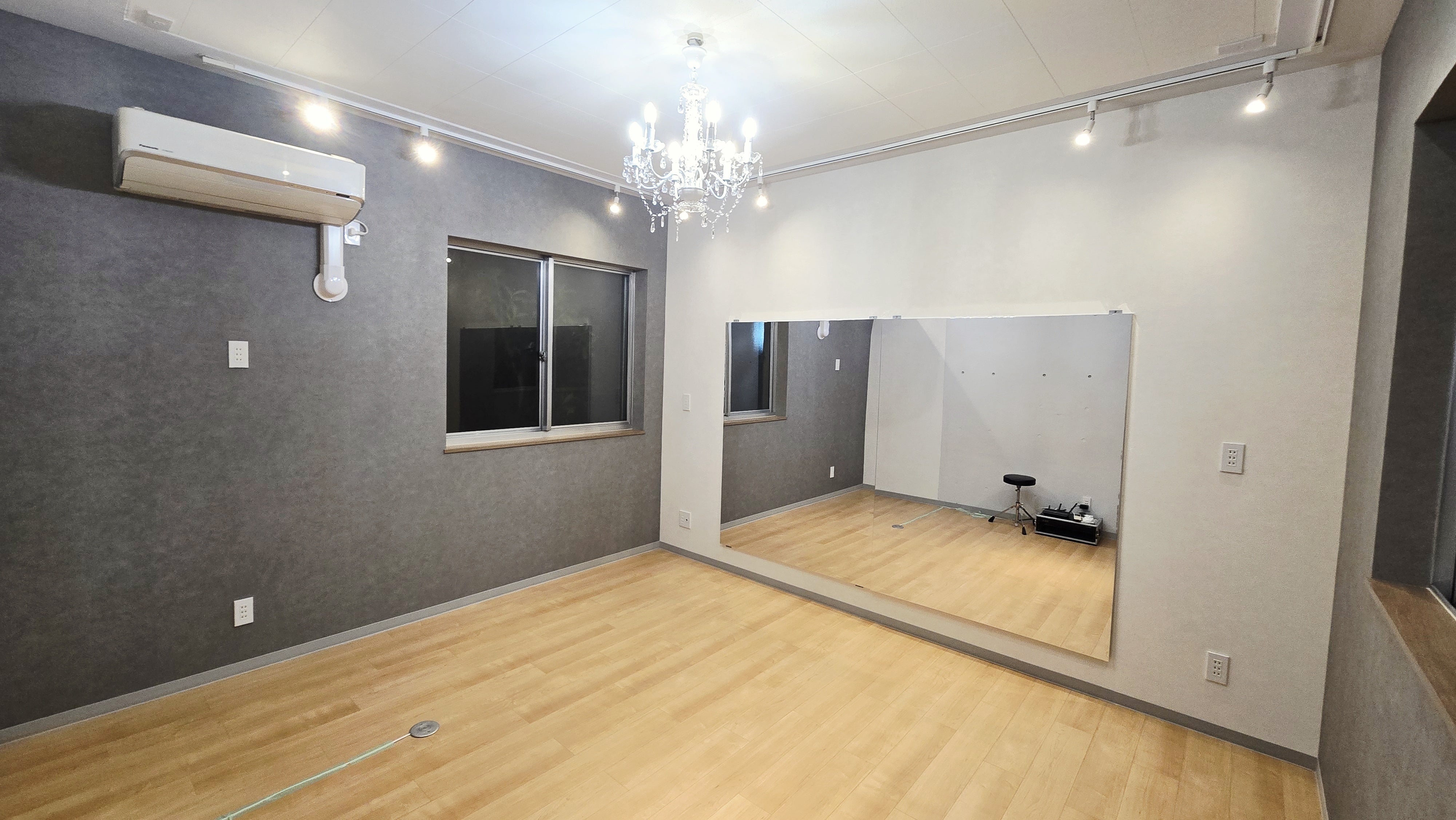 2026/03/05 21:51画像キャプション壁面と天井を増設、防音ゴムマットと防音スポンジ、吸音材をミルフィーユ状に張り合わせ、ボードで挟み込み、仕上げにハードスクラッチシートでラッピングしました。窓は二重窓をダブルで取り付け、四重+空気層になっています。ブラインドは後日取り付けします。防音施工を計画より増したので、部屋の大きさが若干狭くなってしまいましたが、イメージ通りの仕上がりになりました!シャンデリアも飾ってみました。如何でしょうか?週末はいよいよ機材の搬入とレイアウト決めになります。ご期待下さい! もっと見る