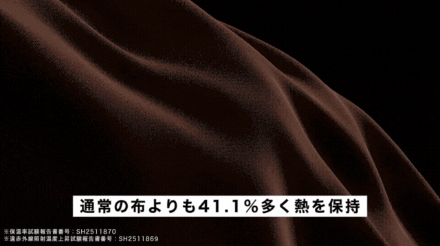 糸の1本1本に遠赤外線素材を練り込み、体や周囲の熱をキャッチして逃さない。軽やかなのに、まるで自分のまわりにあたたかい空気をまとうような心地よさ。その保温力は、最大41.1%の暖かさとして実証されています。
