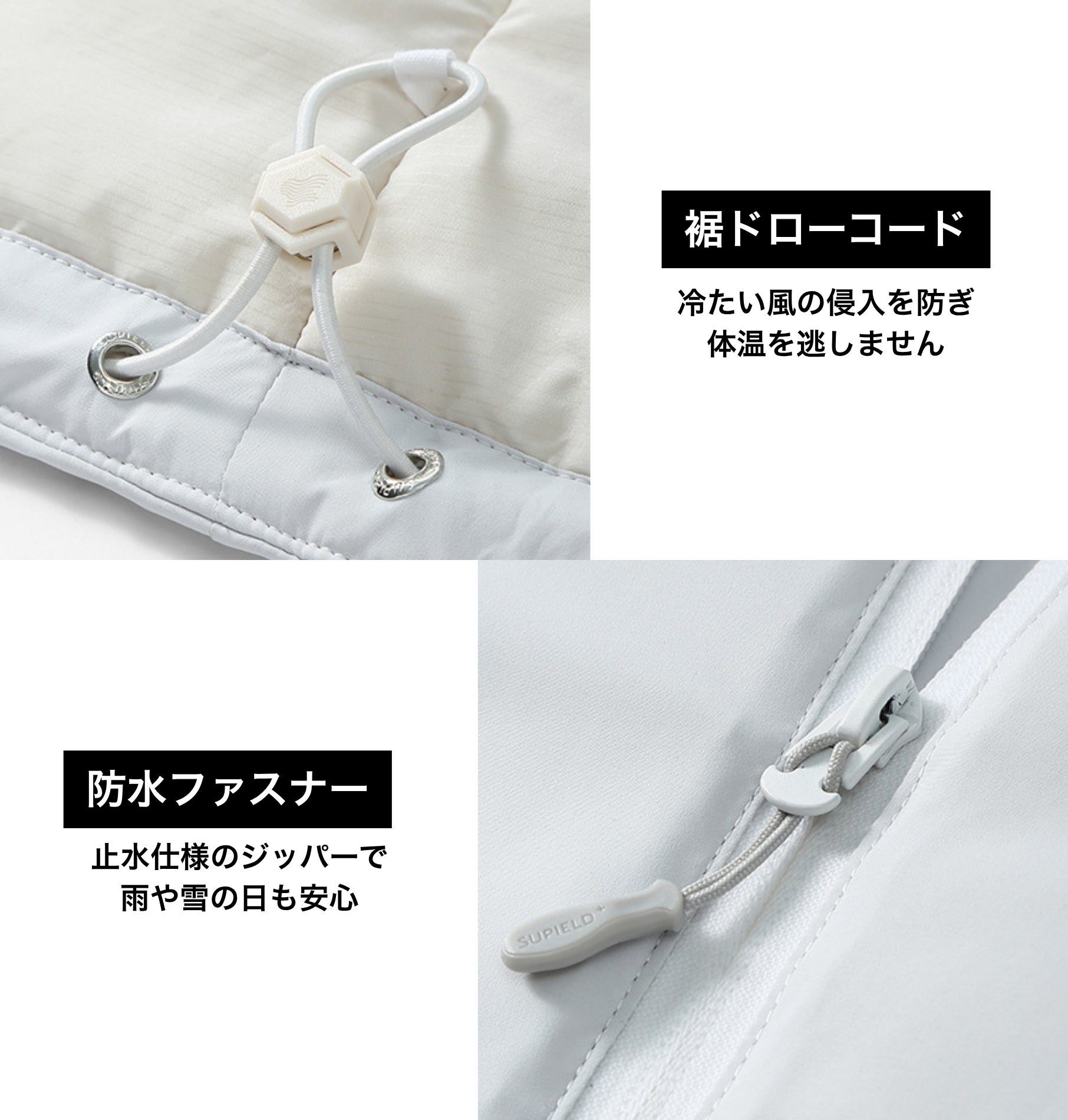 エアロゲル中綿は動物繊維を使わず細菌の繁殖を抑え、ダックダウン特有の臭いもないです。さらに吸湿率がダウンのわずか1/17に過ぎず、湿気が多い環境下でも驚くほど暖かく快適です!