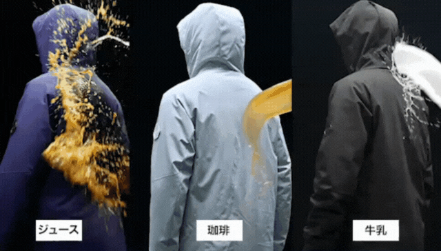 さらに、表面に施された防汚加工で、ジュースや珈琲などが付着してもシミが残る心配もほとんどございません。※同じ加工をされた別のジャケットでの実験です。
