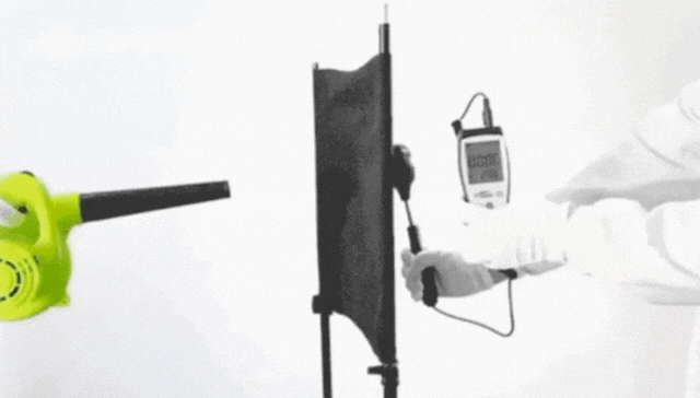 ※上記の実験は、エアジャケット表面生地の防風性を検証するためのものです。