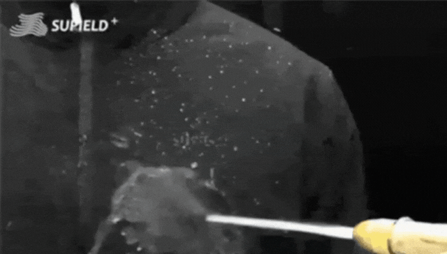 ドライアイスとエビの間に2mmのエアロゲルシートを挟み1分後の経過を観察する実験を行いました。※断熱性実験はSUPIELD・S.KISTLER試験室で行われたものです。