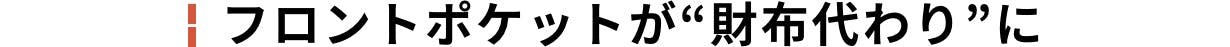 ファスナー付きのフロントポケットは、ICカード、紙幣、クレジットカードなど、すぐに取り出したい小物の定位置に。使いたいときに片手でサッとアクセス。