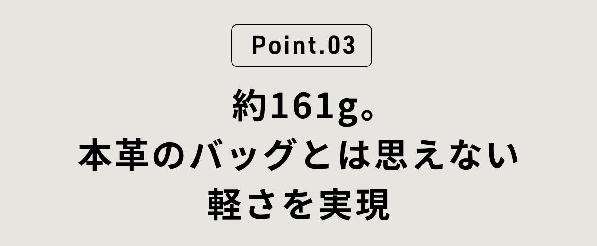 パーツ、縫製構造、金具まで徹底的に見直し、革製で161gという軽さを実現しました。