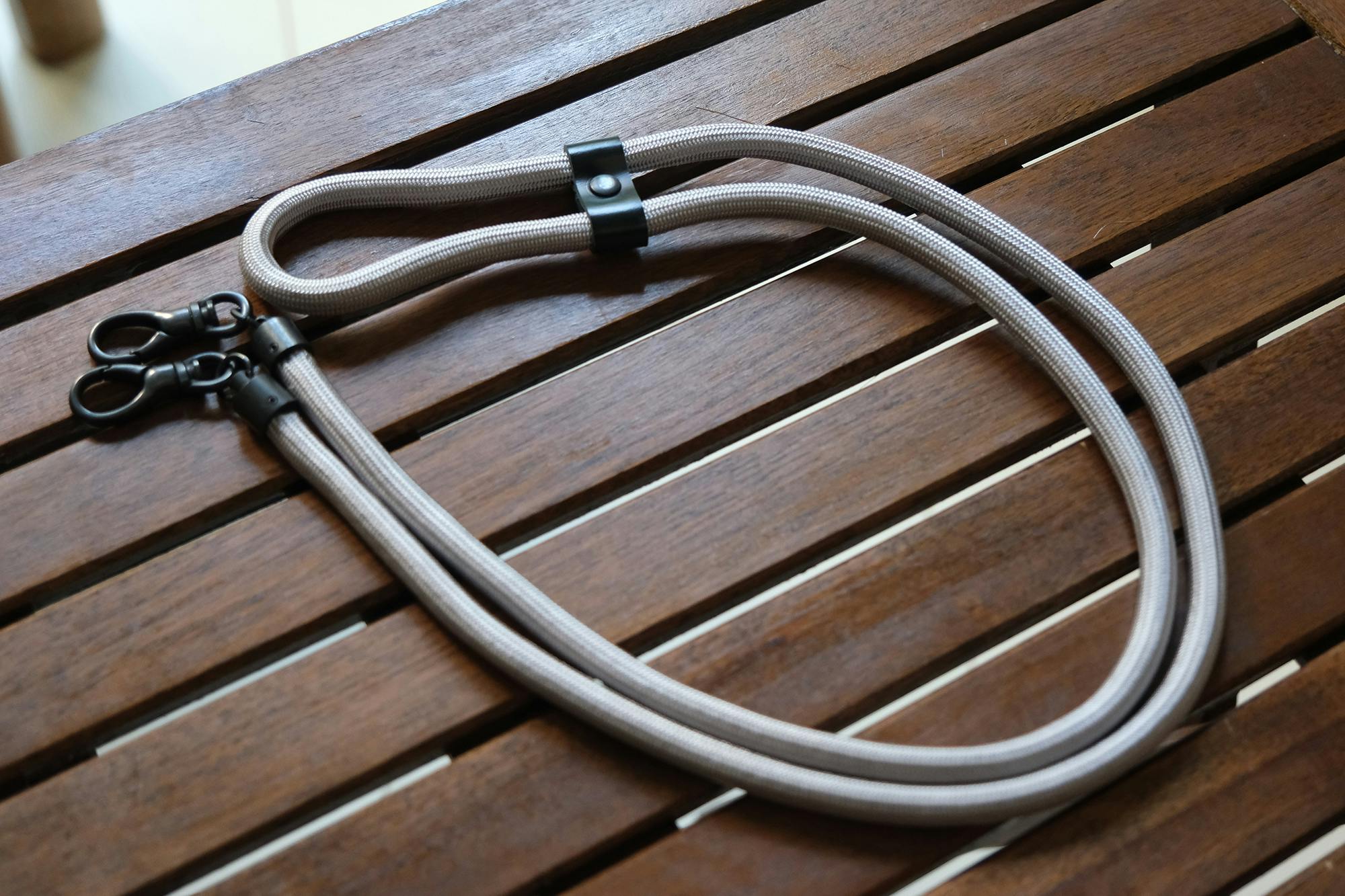 アウトドア用のガイロープ(日本製ナイロン、太さ8mm)を採用し、しなやかさと日常使いに十分な強度を両立。