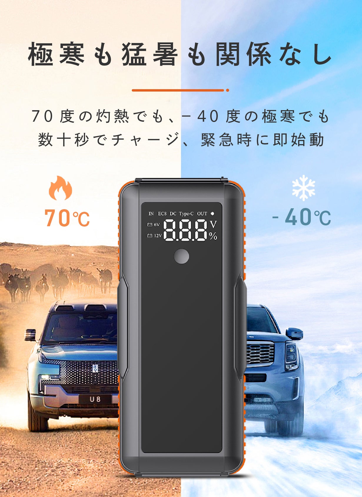 F1や宇宙開発で使われるほどの高電圧技術が、 私たちの車の12ボルト電源にも応用され、頼れるジャンプスターターとして実用化されています。