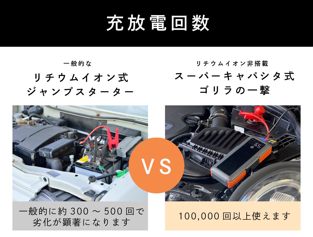 2026/01/17 23:15この度は、【リチウムイオン非搭載・充電不要 スーパーキャパシタ式ジャンプスターター】プロジェクトに多くのご支援をいただき、誠にありがとうございます。皆さまのおかげで、本プロジェクトは無事SUCCESSを達成することができました。心より御礼申し上げます。■ 本商品の特長について本製品は、一般的なジャンプスターターとは異なり、リチウムイオンバッテリーを一切搭載していない「スーパーキャパシタ式」を採用しています。そのため、膨張・破裂・発火といったリスクがなく車内保管でも安心、長期間放置による劣化の心配もありません。安全性と実用性を両立した設計となっています。■ 使い方は、たったの2ステップ操作方法も非常にシンプルです。車のバッテリーにケーブルを接続車から電力を吸収して準備完了わずか2〜3分ほどで充電が完了し、すぐに使用できるため、突然のバッテリー上がり時にも慌てることなく対応できます。「誰でも直感的に使えること」ここも本製品のポイントになります。引き続き、最後までよろしくお願いします。 もっと見る