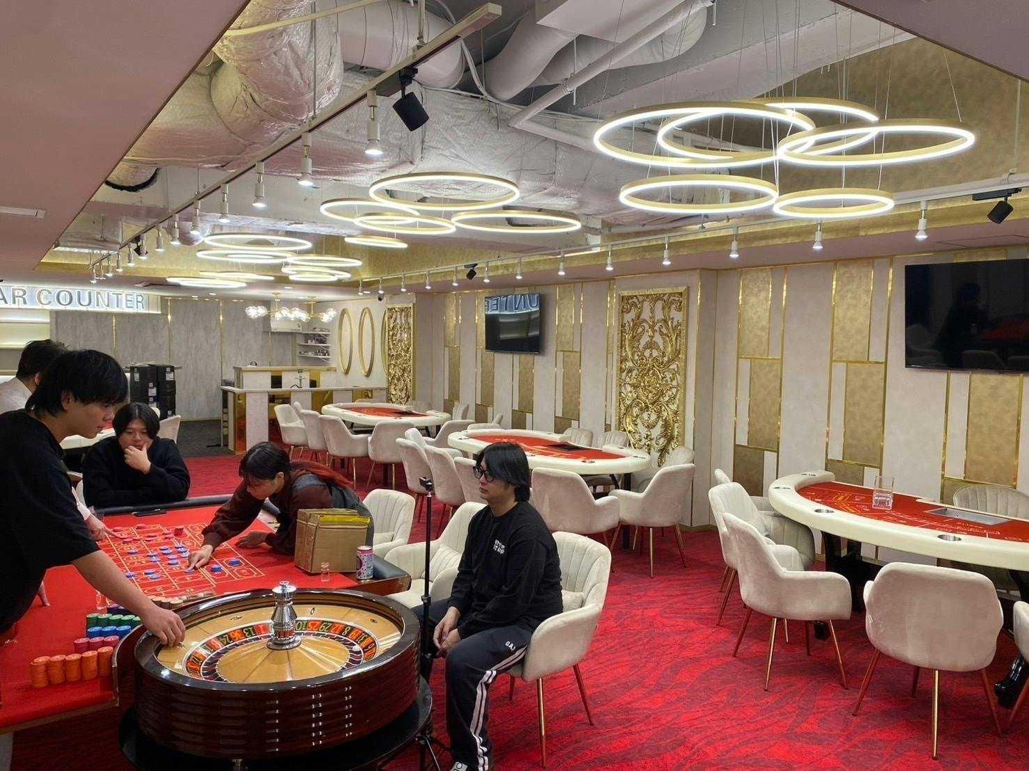 さらに、こだわりのお酒やフードも多数ご用意し、VIPルームも完備し二次会やくつろぎの空間もお楽しみいただけます。カジノによく行く大人の方はもちろん、カジノゲームが初めての方の予行練習にも最適です。ポーカーは経験があるけれど、他のカジノゲームはほとんど知らないという方にも、気軽に体験していただける場所を目指しています。