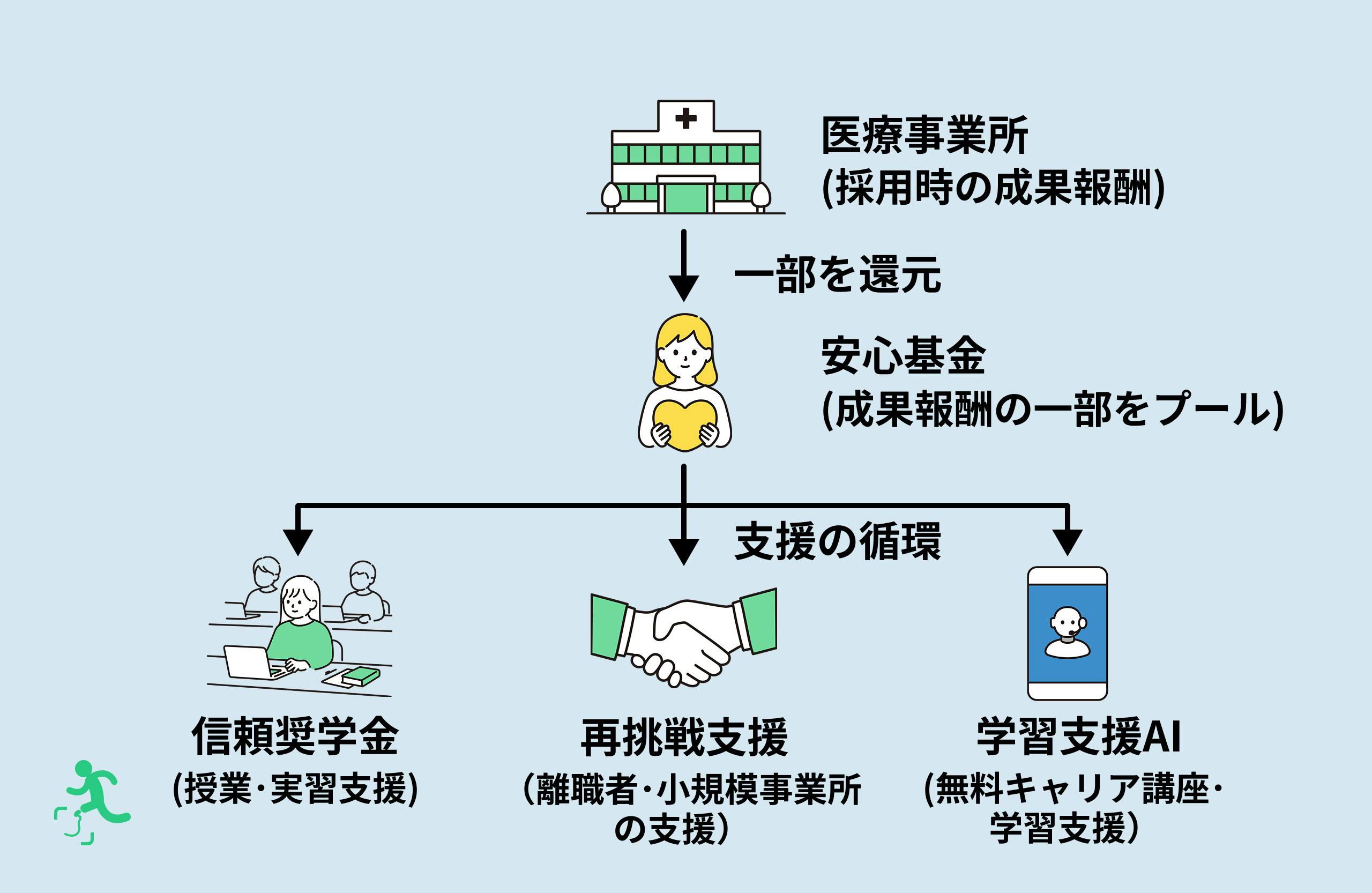医療現場(採用側)の成果報酬で運営し、その収益を