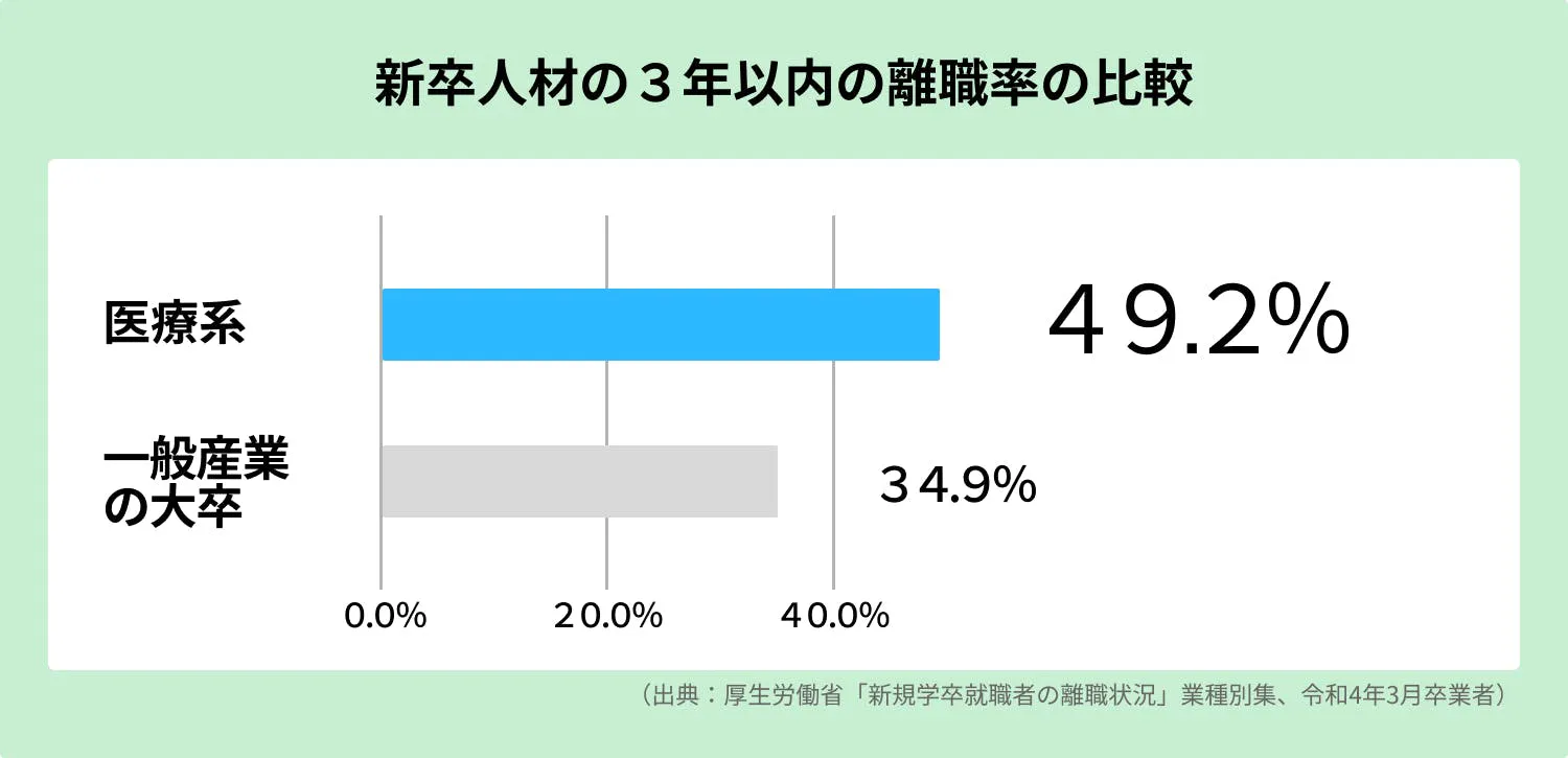 厚生労働省の統計によると、医療・福祉分野全体で3年以内に