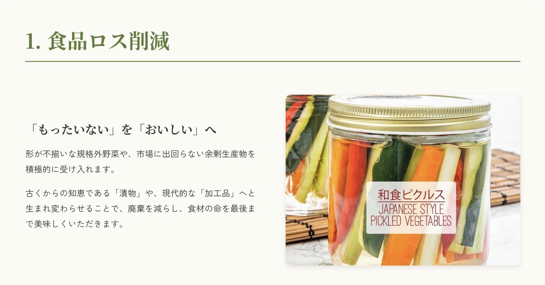 私たちは「漬物」という伝統文化を軸に、持続可能な未来への種まきを続けます。