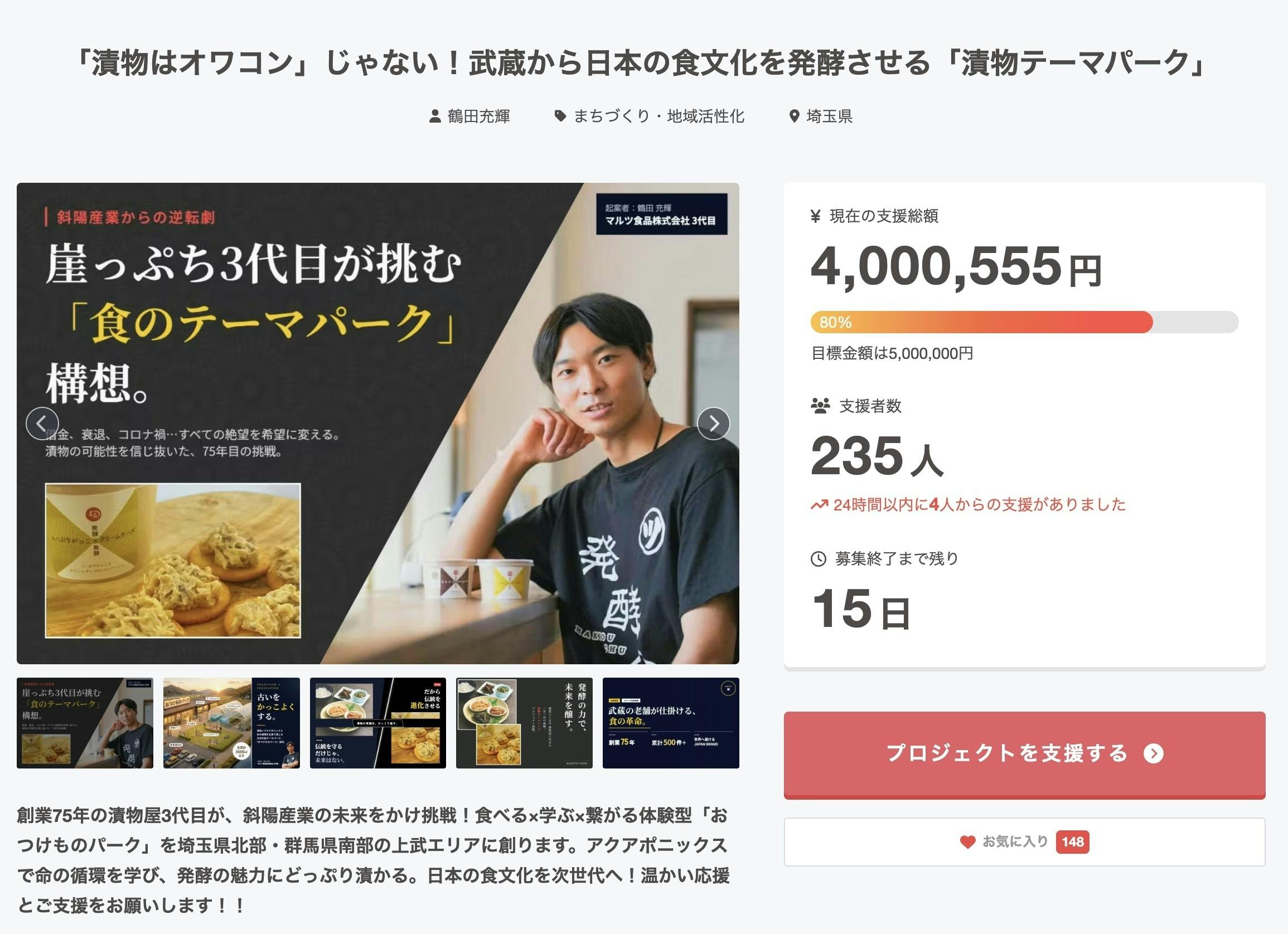 まずは、心からの感謝を伝えさせてください。 マルツ食品の鶴田です。本日、私たちの挑戦はついに目標金額の80%(400万円)を突破しました! 一歩一歩、夢が現実へと近づいています。ご支援いただいたお一人おひとりの想い、しかと受け取っています。さて、今日は特に経営者・リーダーの皆様へ向けて、少しだけ踏み込んだお話をさせてください。■「おつけものパーク」は、ただの漬物屋の施設ではありません「なぜ、漬物屋がアクアポニックス(魚と野菜の循環農業)をやるのか?」 そう思われている方も多いかもしれません。アクアポニックスは、単なる最新の環境技術ではありません。 魚の排泄物が野菜を育て、野菜が水を綺麗にして魚へ還す。 この「小さな地球」のような循環システムは、「無駄なものなど何ひとつない」という、僕たちが忘れかけていた経営の本質そのものだと思っています。■「かっこいい未来」に、貴社の名前を刻みませんか?今、社会が求めているのは、言葉だけのSDGsではありません。 「実際に、手触りのある形で未来を作っているかどうか」です。上武エリアに誕生するこのパークは、いわば「未来のスタンダード」を証明する実証実験場です。ここにスポンサーやパートナーとして早期から関わっていただくことは、単なる広告ではなく、「面白い未来に投資し、伝統をアップデートする勇気がある企業だ」という、貴社のセンスと姿勢を社会に示す、最高の「看板」になります。■「共創パートナー」としてのプレゼンスを!「なんか、あそこの社長、面白いことやってるな」「あそこの会社は、いつも新しい価値の味方だ」そんな風に、社員や顧客から誇りに思われる存在でありたい。 そう願う経営者の皆様に、ぜひ、この新しい挑戦に、貴社のプレゼンス(存在感)を刻んでください。残り20%。ここからのラストスパート、ぜひ「経営の先輩」たちの力をお貸しください。 一緒に、日本中が驚くような「かっこいい未来」を爆発させましょう!