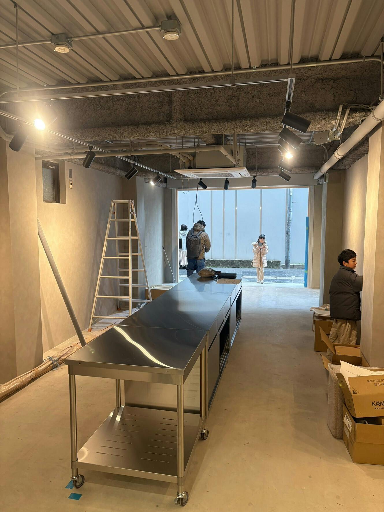 店舗の内装工事が着々と進み、今回は大きな節目となる 「製造設備の搬入」 を行いました!写真の通り、厨房に業務用の設備が入りはじめて、いよいよ“お店”の輪郭がはっきりしてきました…!