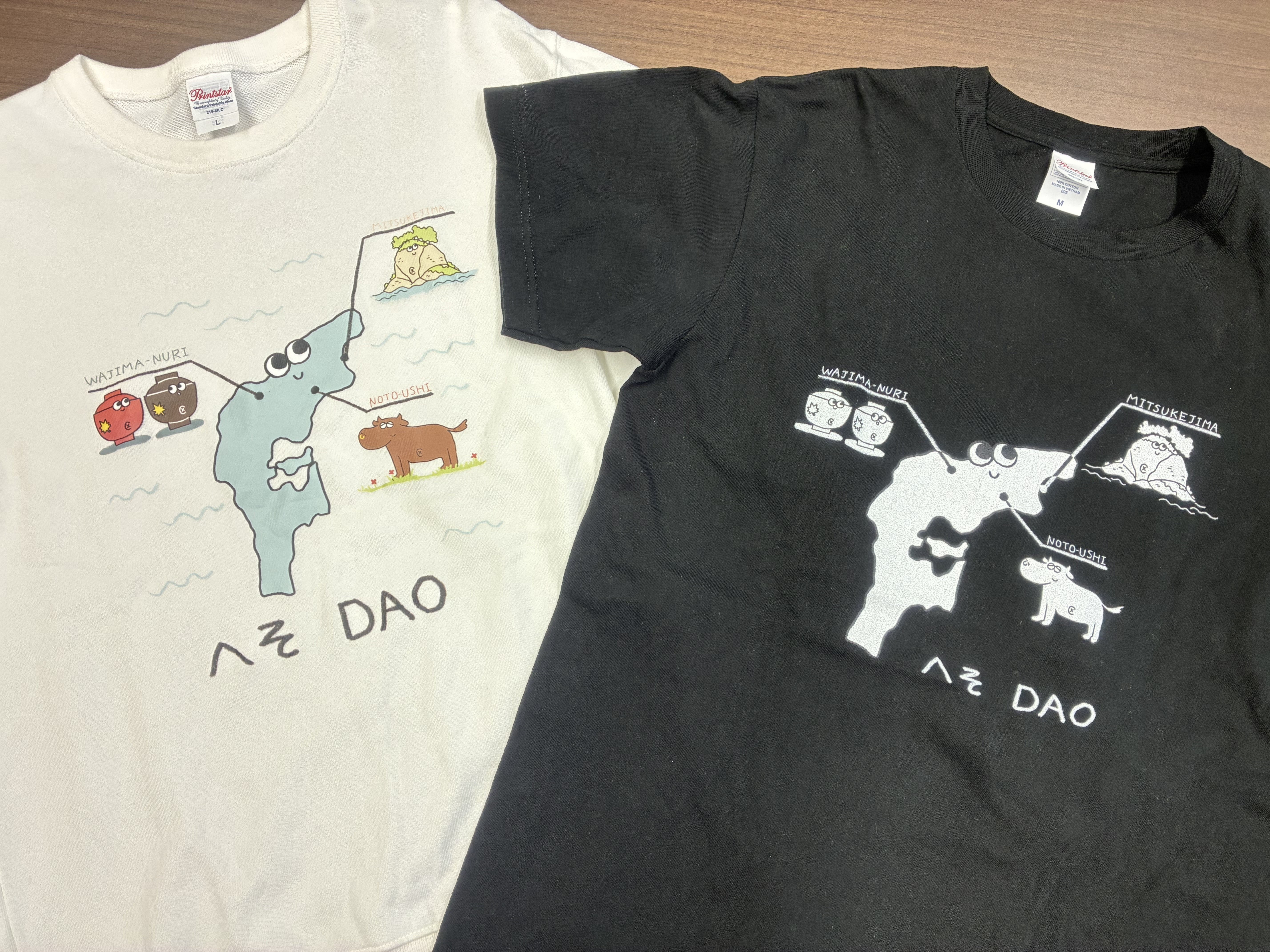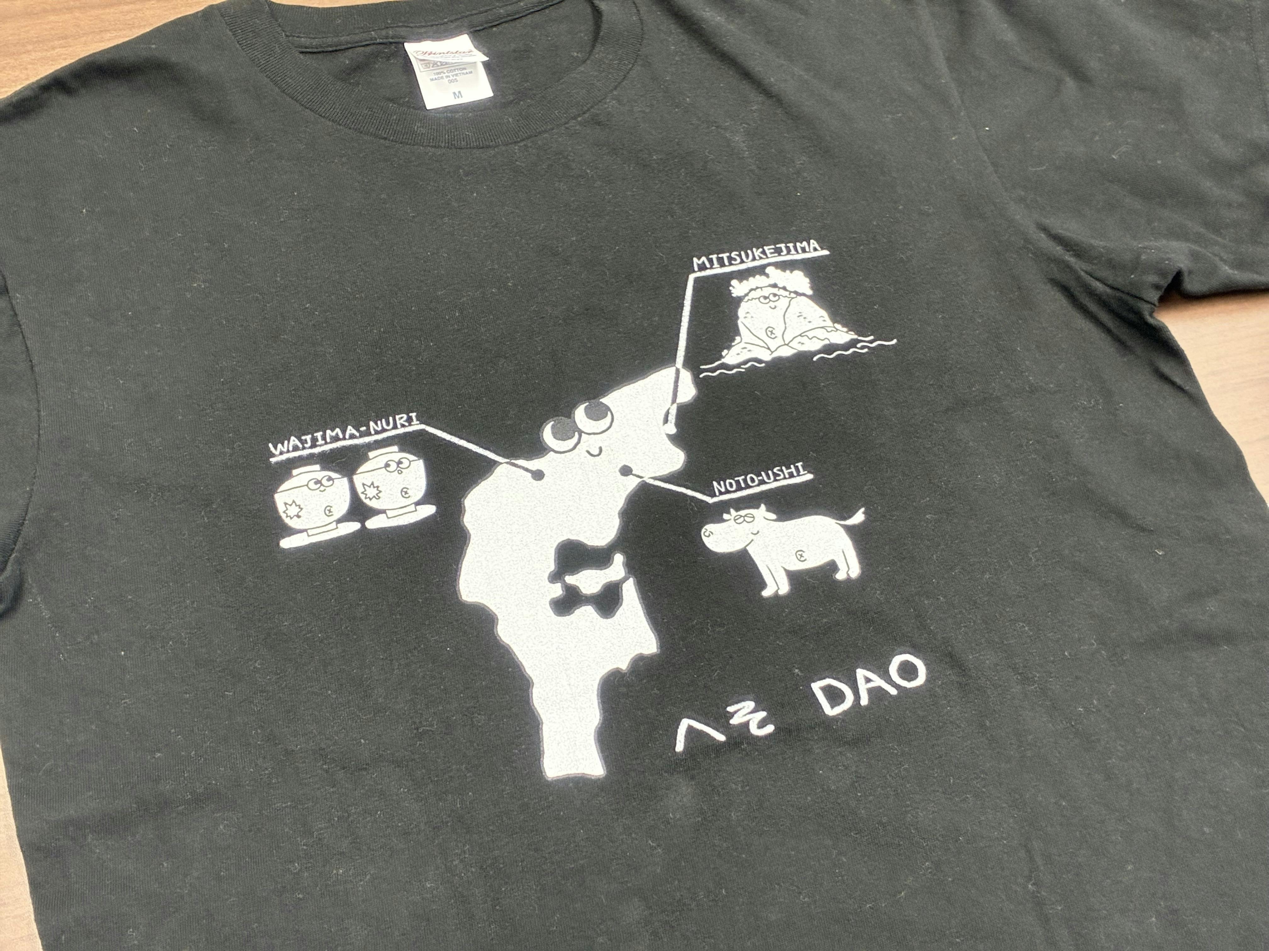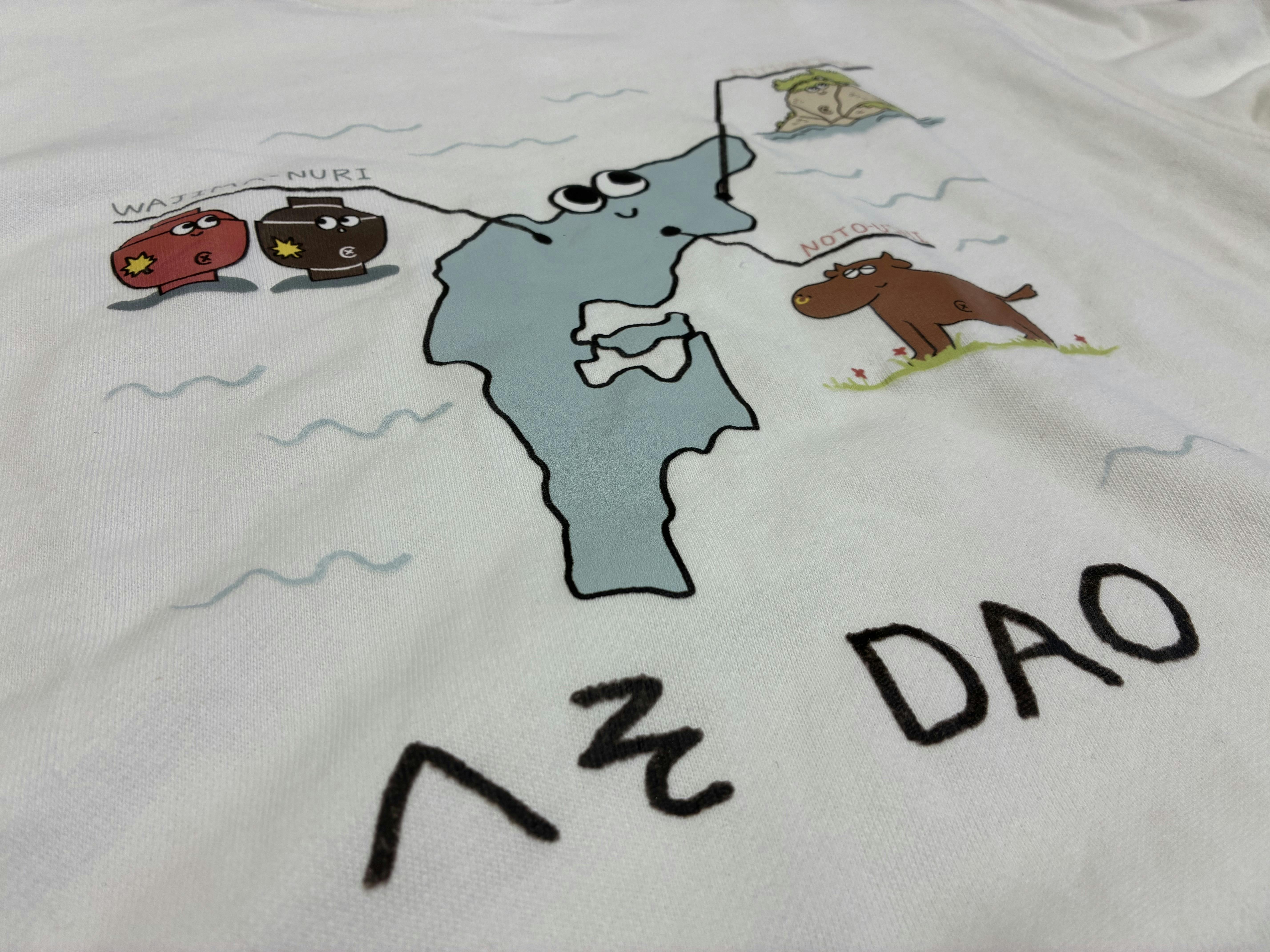 へそDAOプロジェクトのへそって、おへそなんだろうか?と疑問に思っていました。調べていくと、やっぱりおへそで「これはへそを描かなきゃいけないな」と…そうして「能登らしいもの」とでべそを組み合わせて描いたのがこのTシャツデザインの始まりです。