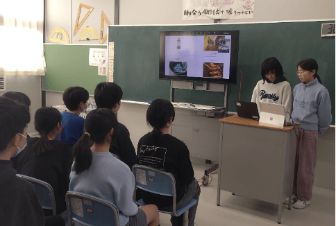 2026/02/09 20:231月30日(金)に石川県野々市の小学校の6年生たちへ向けて、これまで探究してきた能登町の魅力をプレゼンテーションにまとめ、zoom内で発表しました。同じ石川県内でも能登から遠く離れた同世代の相手に、短時間でうまく魅力を伝えることは簡単ではなく、練習段階では苦労する場面も見られました。しかし本番では、画面の向こうで熱心に聞いてくれている相手を意識しながら、内容や話し方を工夫した発表を行うことができました。野々市小学校6年生の皆さん、本当にありがとうございました。今後は、野々市小学校のみなさんから頂いた感想をもとに、このプレゼンテーションの内容をオリジナルマップやバスツアーに生かしていきます。 もっと見る