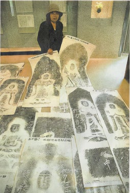 故・有藤シゲさんと床一面の拓本