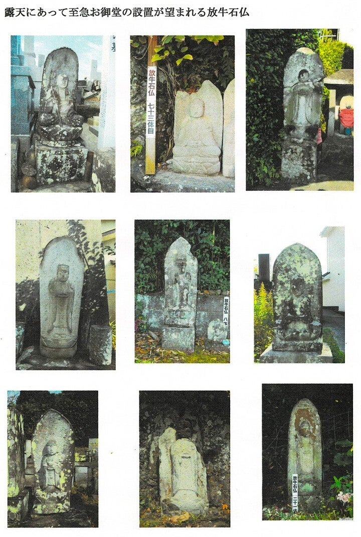 15体の石仏に屋根(御堂)の設置が必要(写真は一部) 今回優先して守る石仏(予定)
