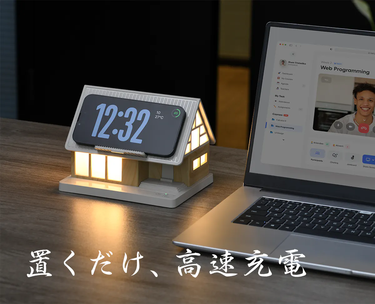 機能だけではない、お部屋に溶け込む愛らしさ。ナチュラルで温もりを感じるおうち型のデザインは、どんなインテリアスタイルにもマッチし、空間にほっこりとした彩りを添えます。単なるガジェットではなく、毎日眺めたくなる、あなたの生活の一部になります。